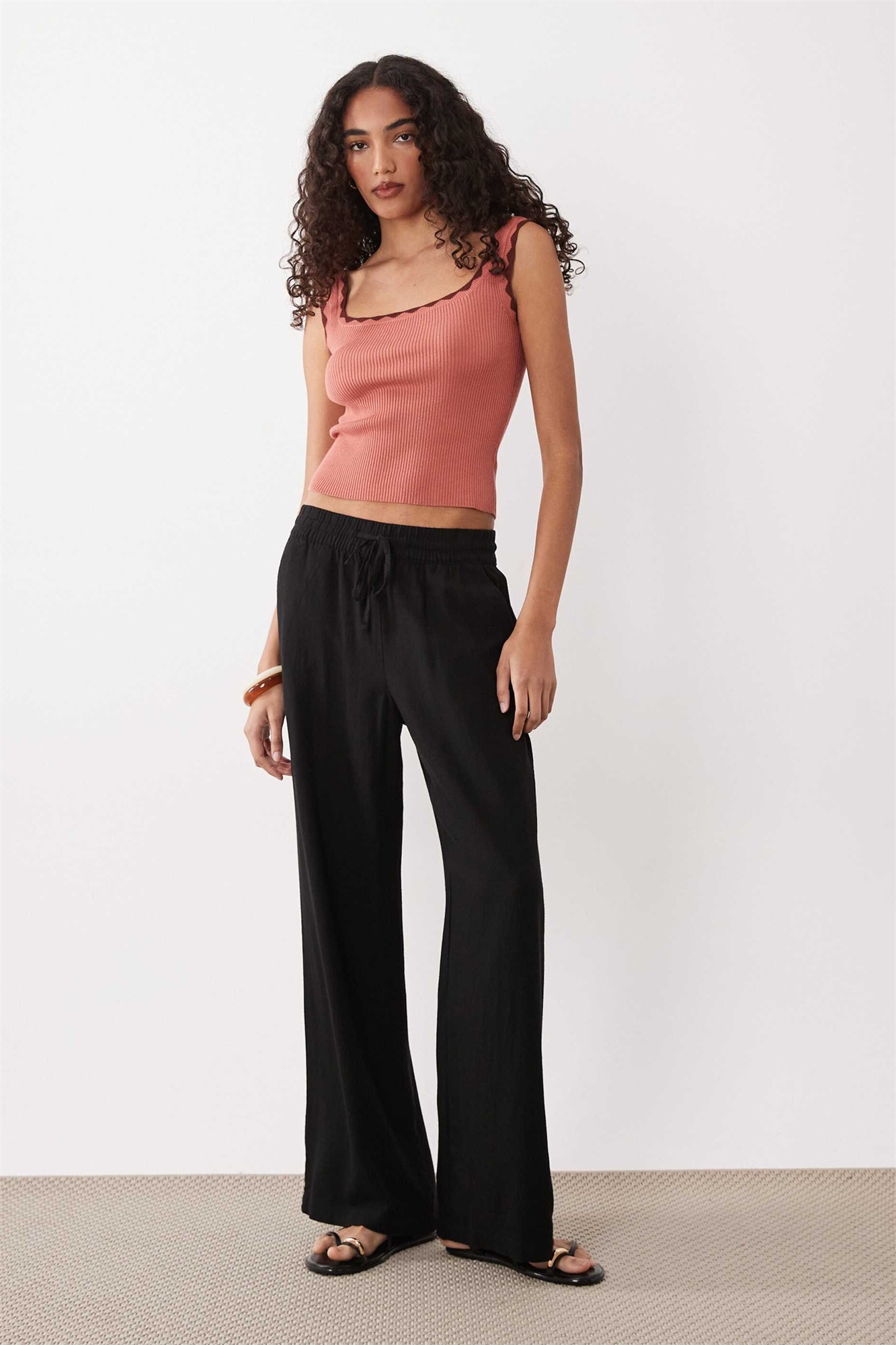 Брюки из смешанного льна с широкими брючинами