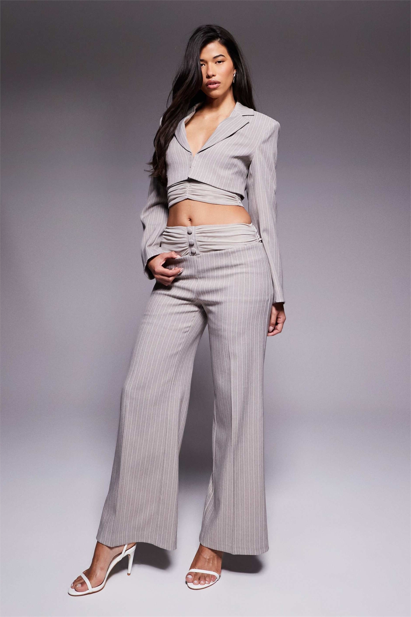 Брюки с сетчатым поясом в тонкую полоску co-ord