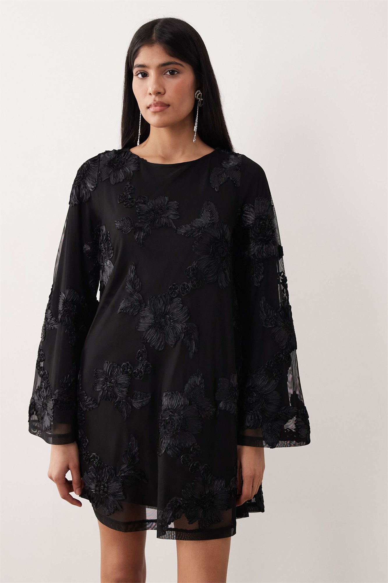 Мини-платье с длинными широкими рукавами свободного кроя и открытой спиной