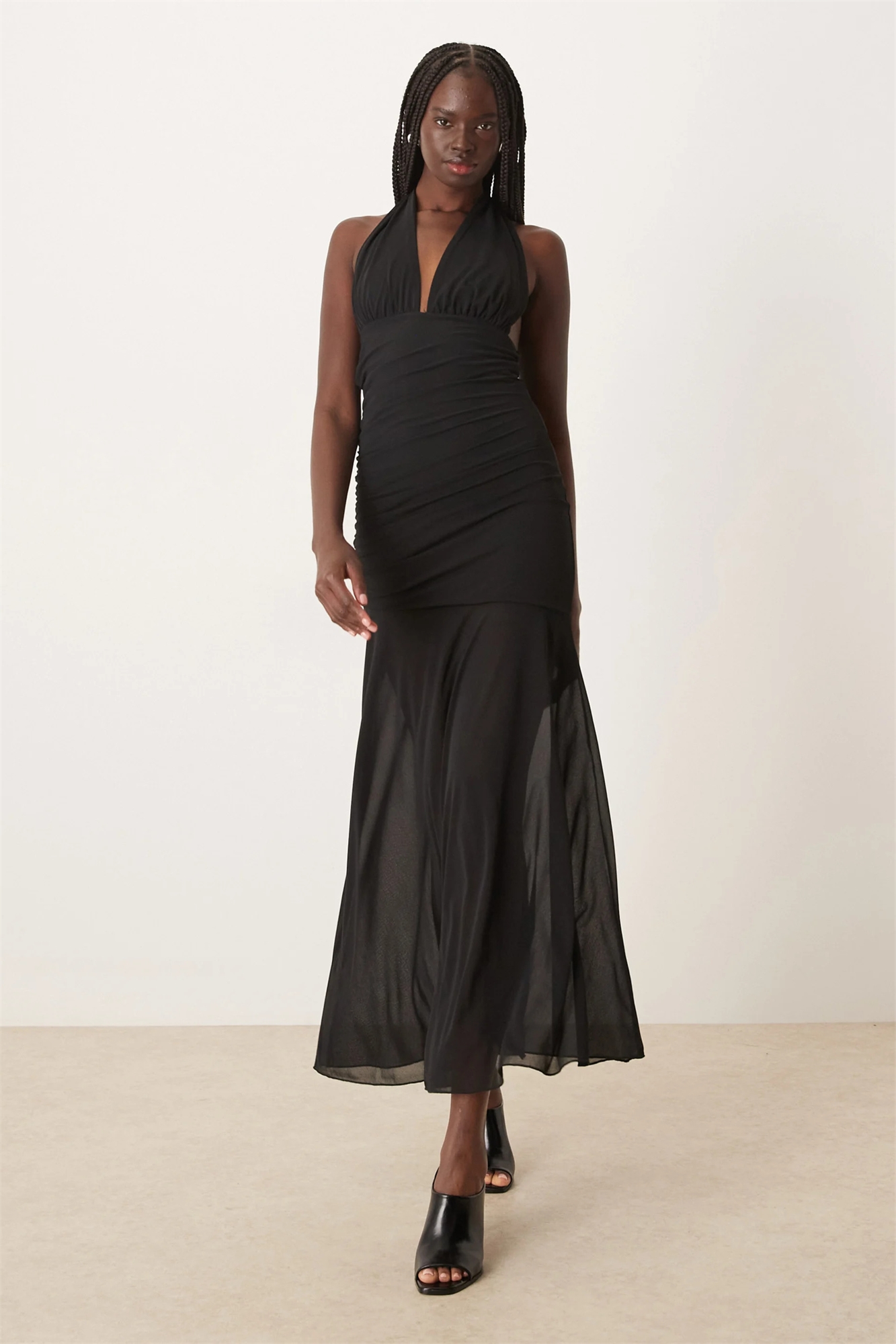 Макси-платье с завязками на шее и заниженной талией