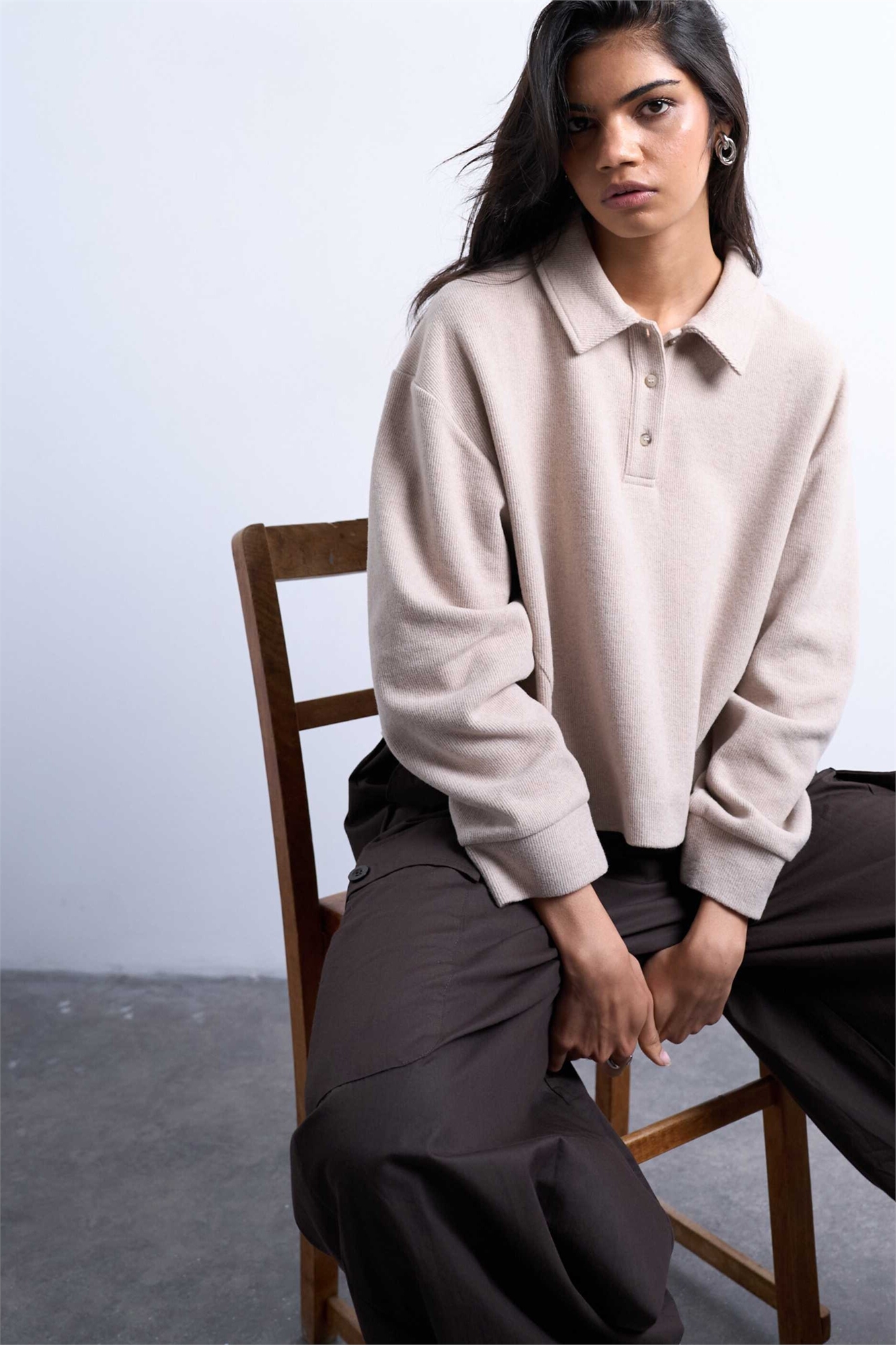 Поло с длинным рукавом, мягкое на ощупь, прямого кроя