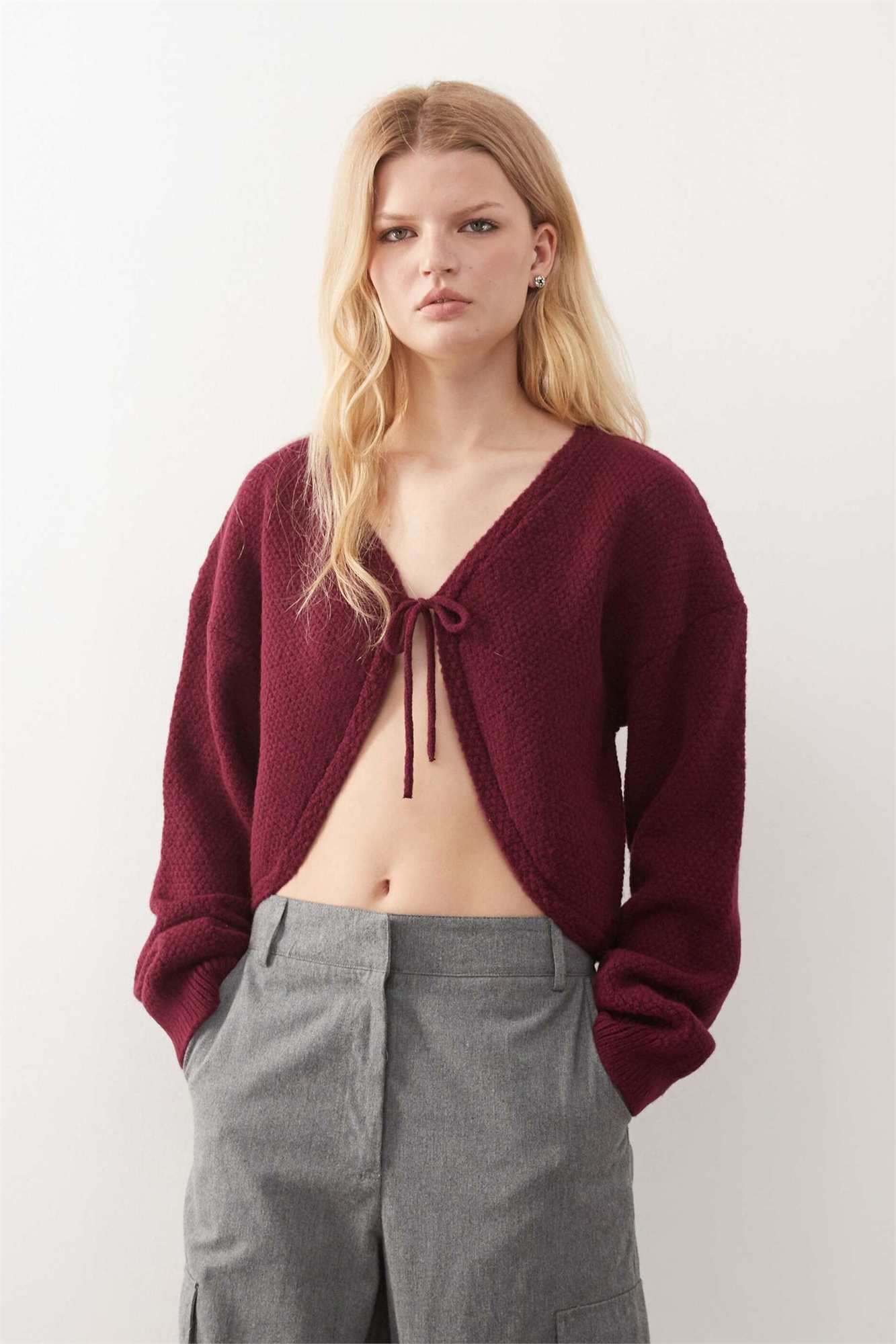 Вязаный кардиган с завязками спереди
