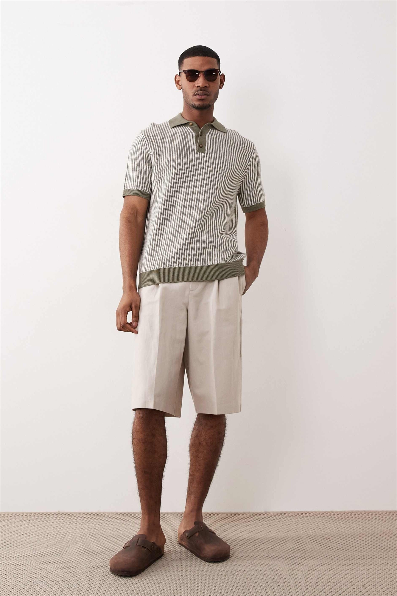 Стильные бермуды из плотного льна свободного кроя