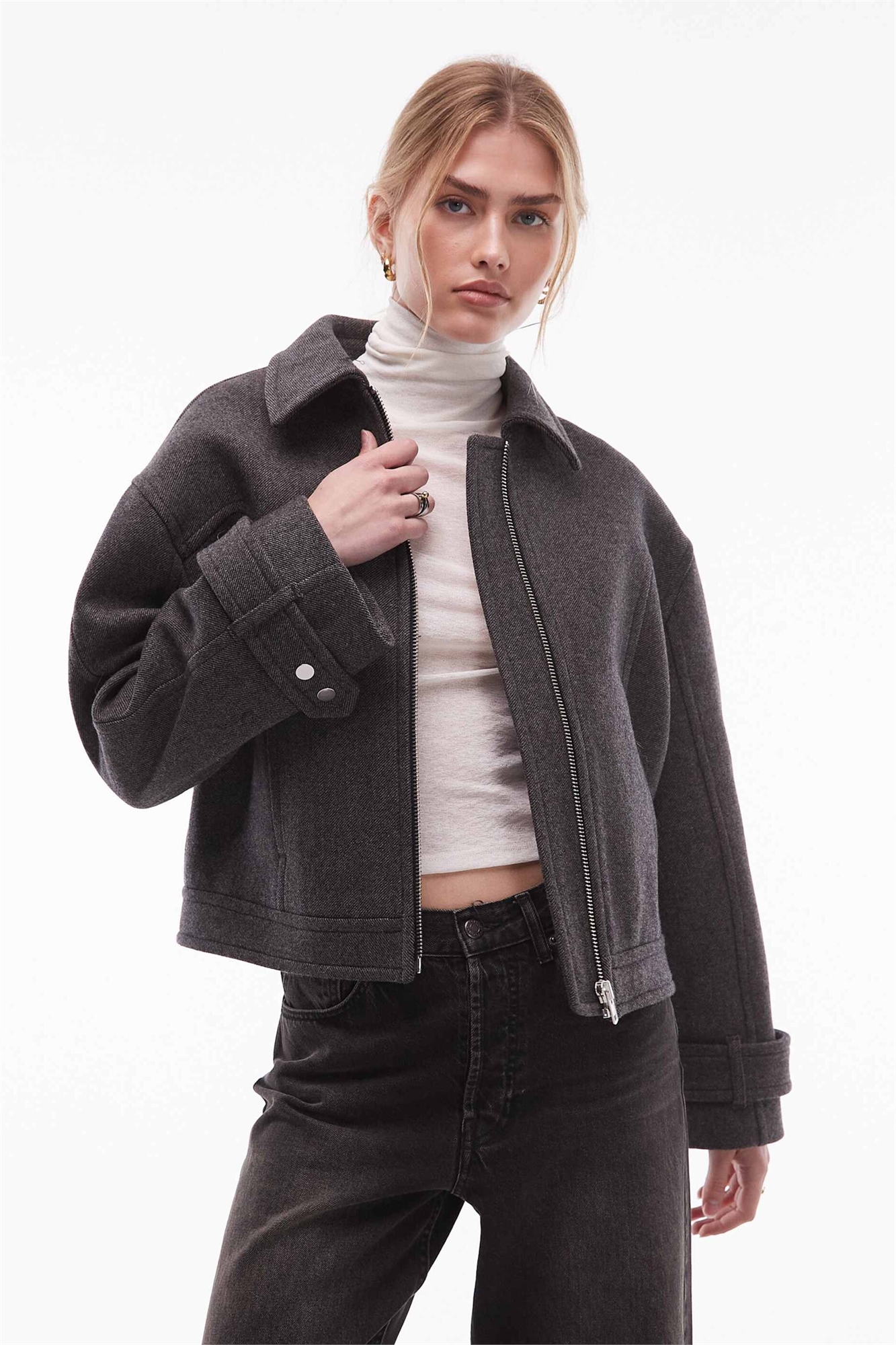 Короткий пиджак из ткани с преобладанием шерсти и саржевым переплетением
