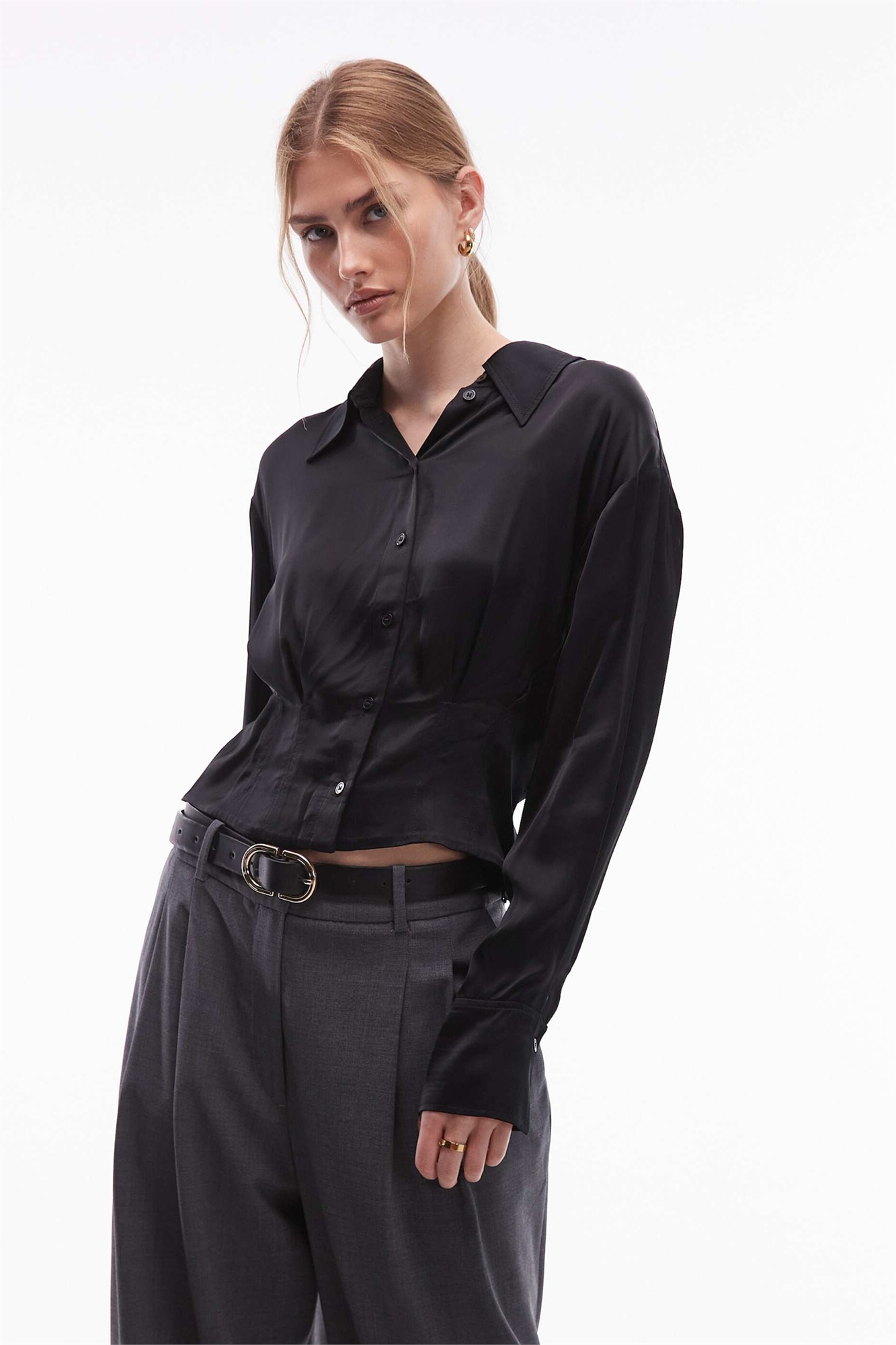 Блузка из сатина с затягивающейся талией