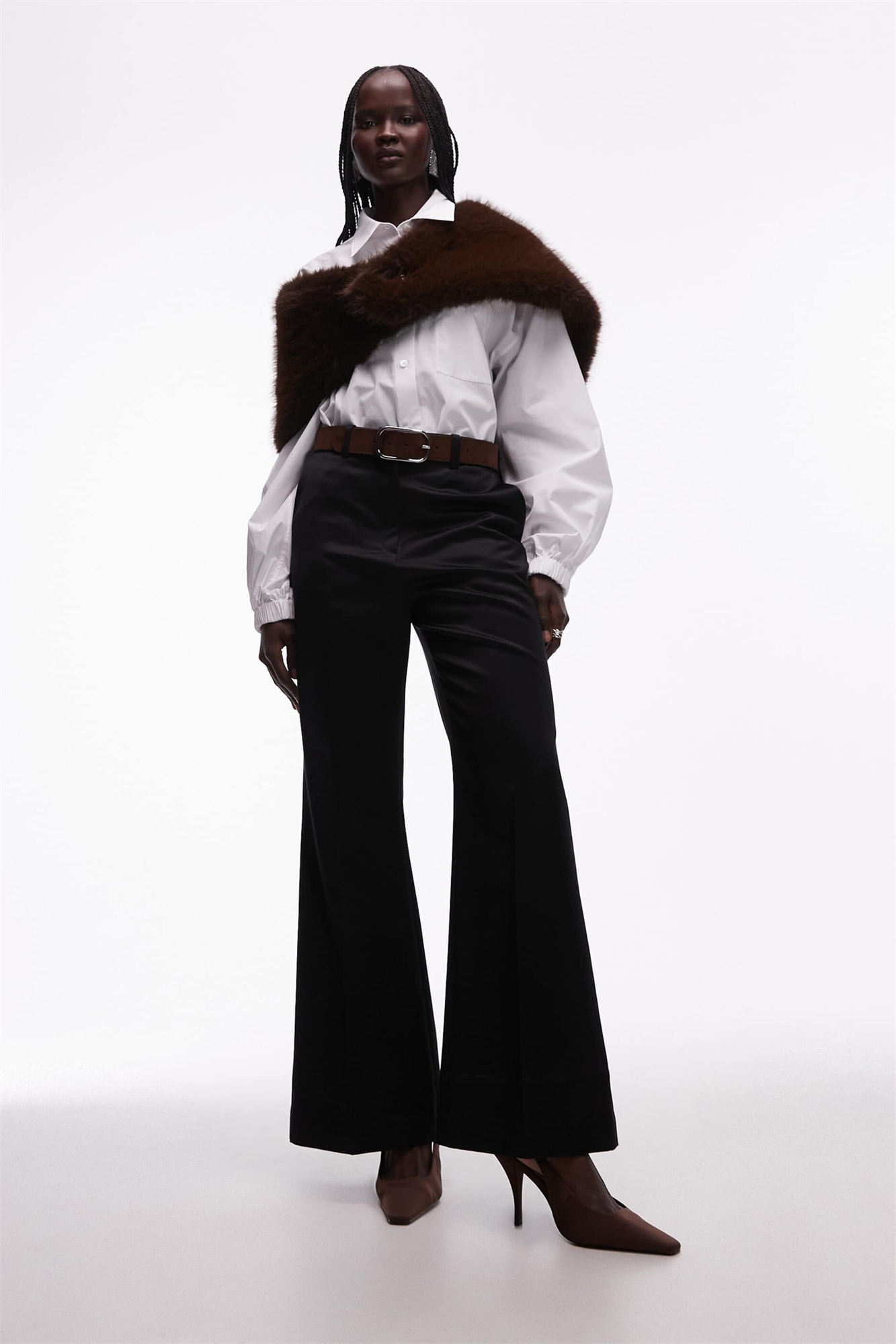 Брюки-клёш с зауженной талией