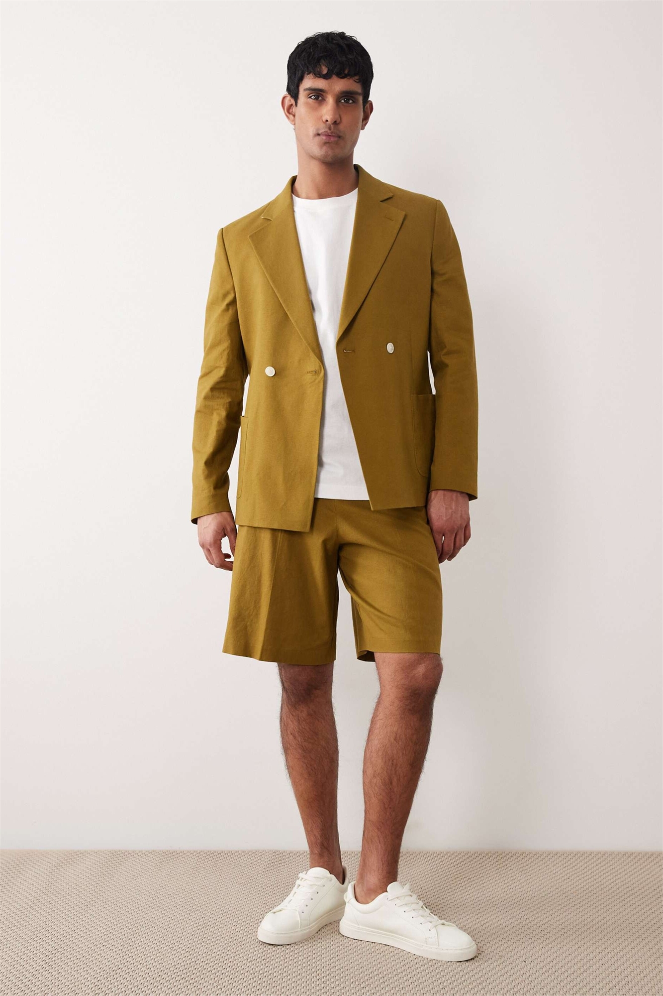 Шорты-костюм Бермуды из смешанного льна цвета хаки