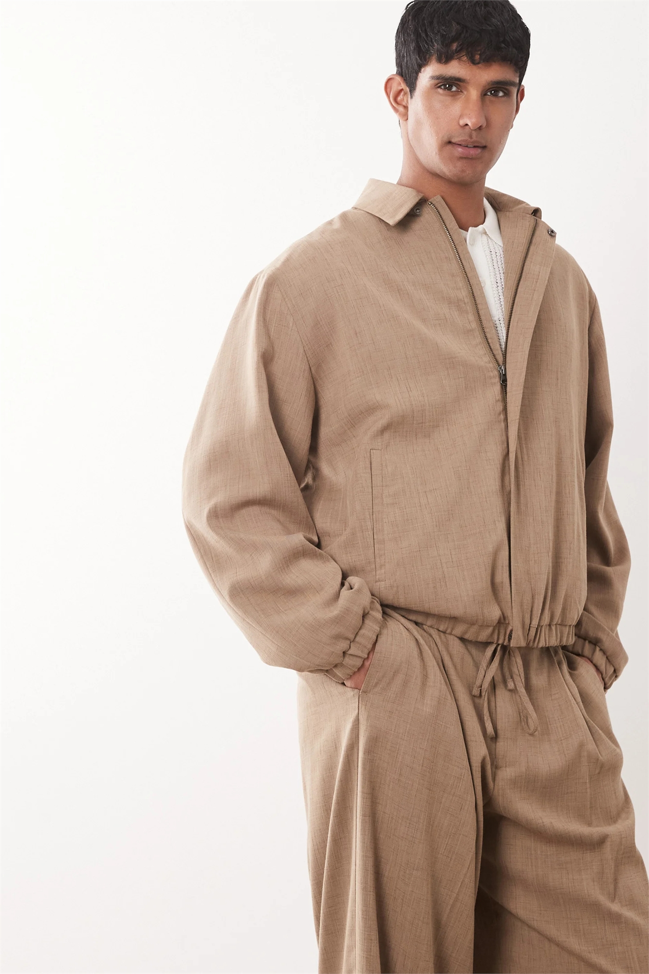Текстурированная ткань. Основной материал: 51% полиэстер, 48% вискоза, 1% эластан. Подкладка: 100% полиэстер.