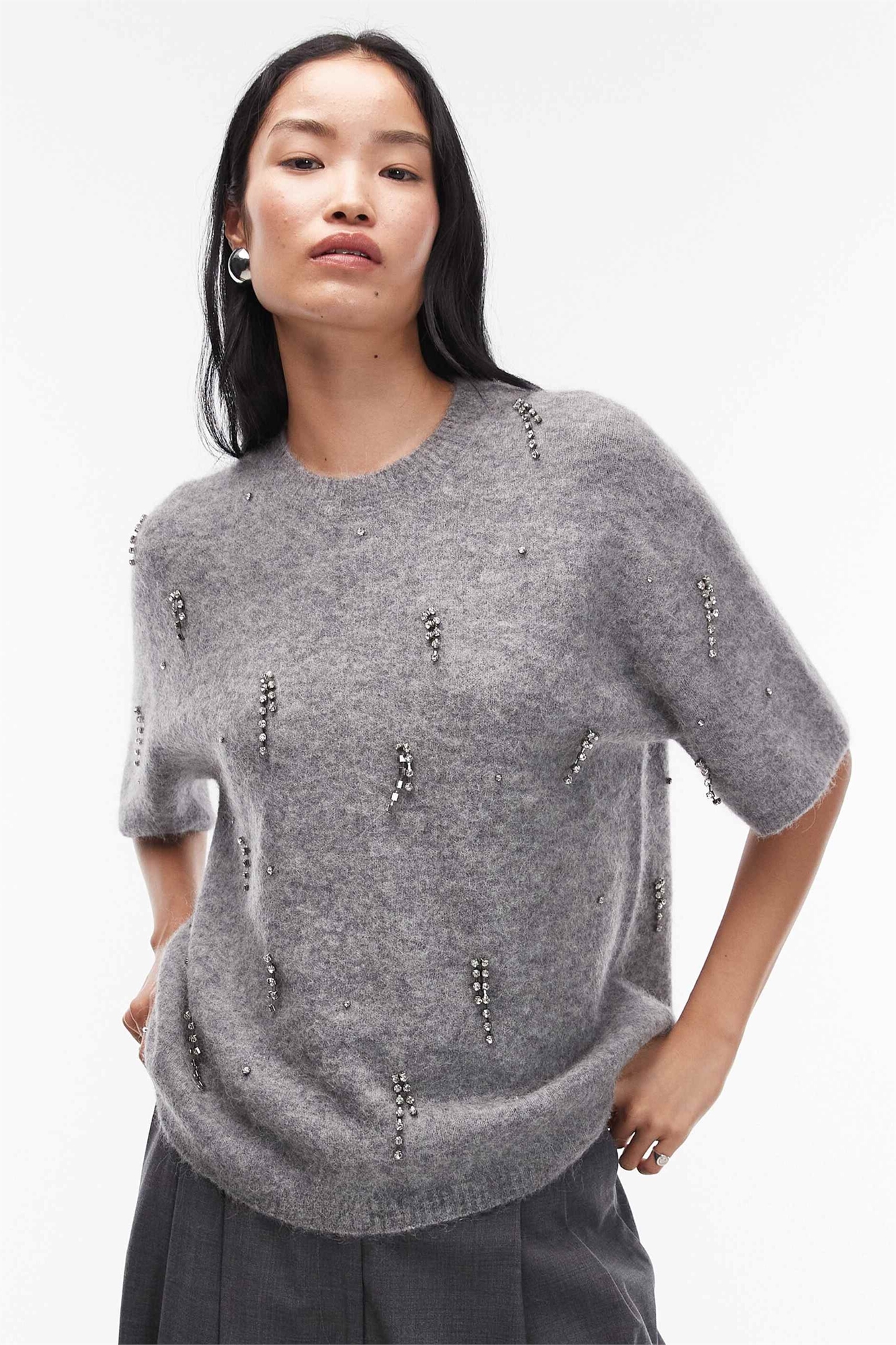 Трикотажная футболка из смеси альпаки и шерсти с стразами