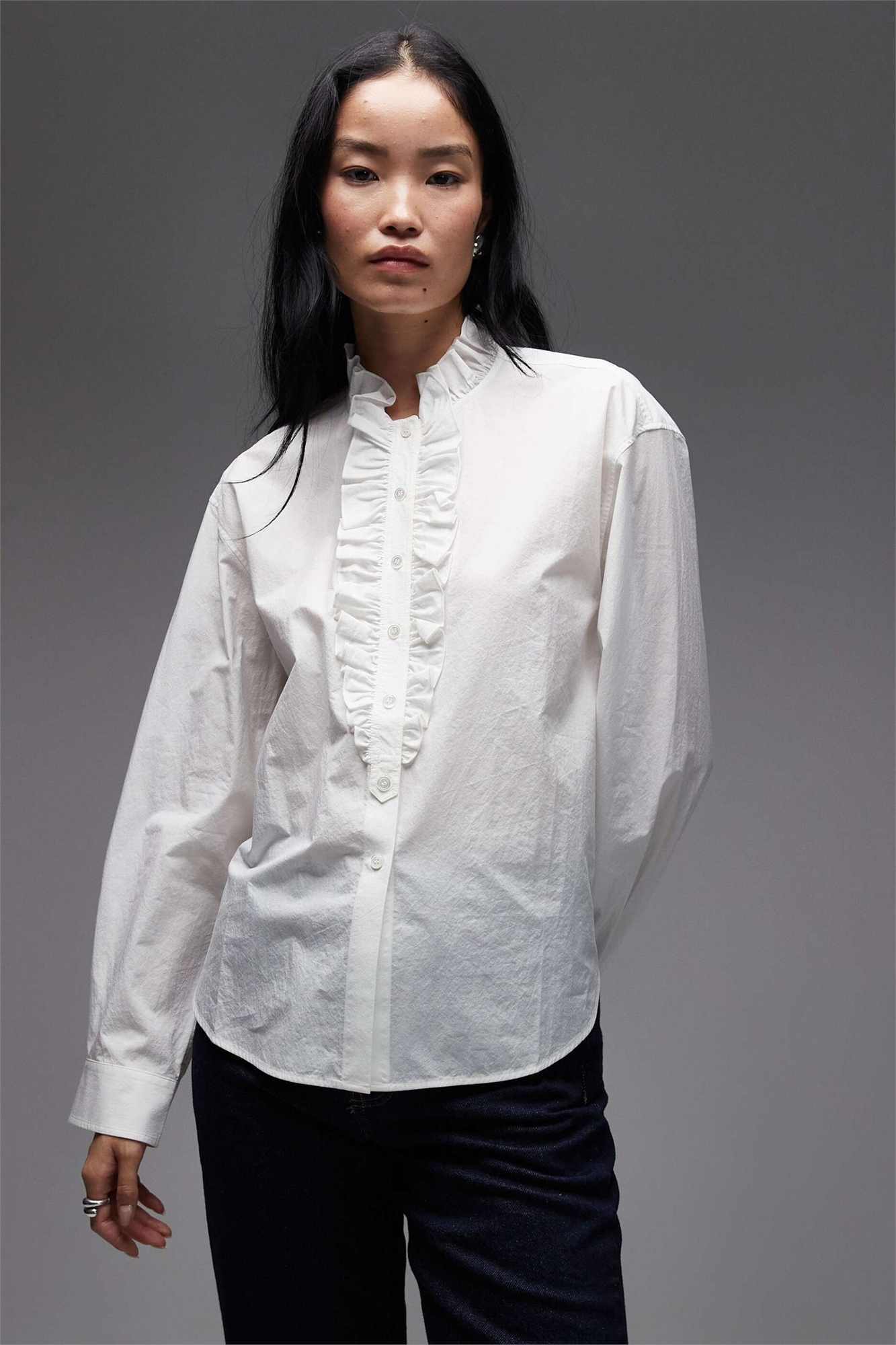 Блузка с длинными рукавами из чистого хлопка с оборками