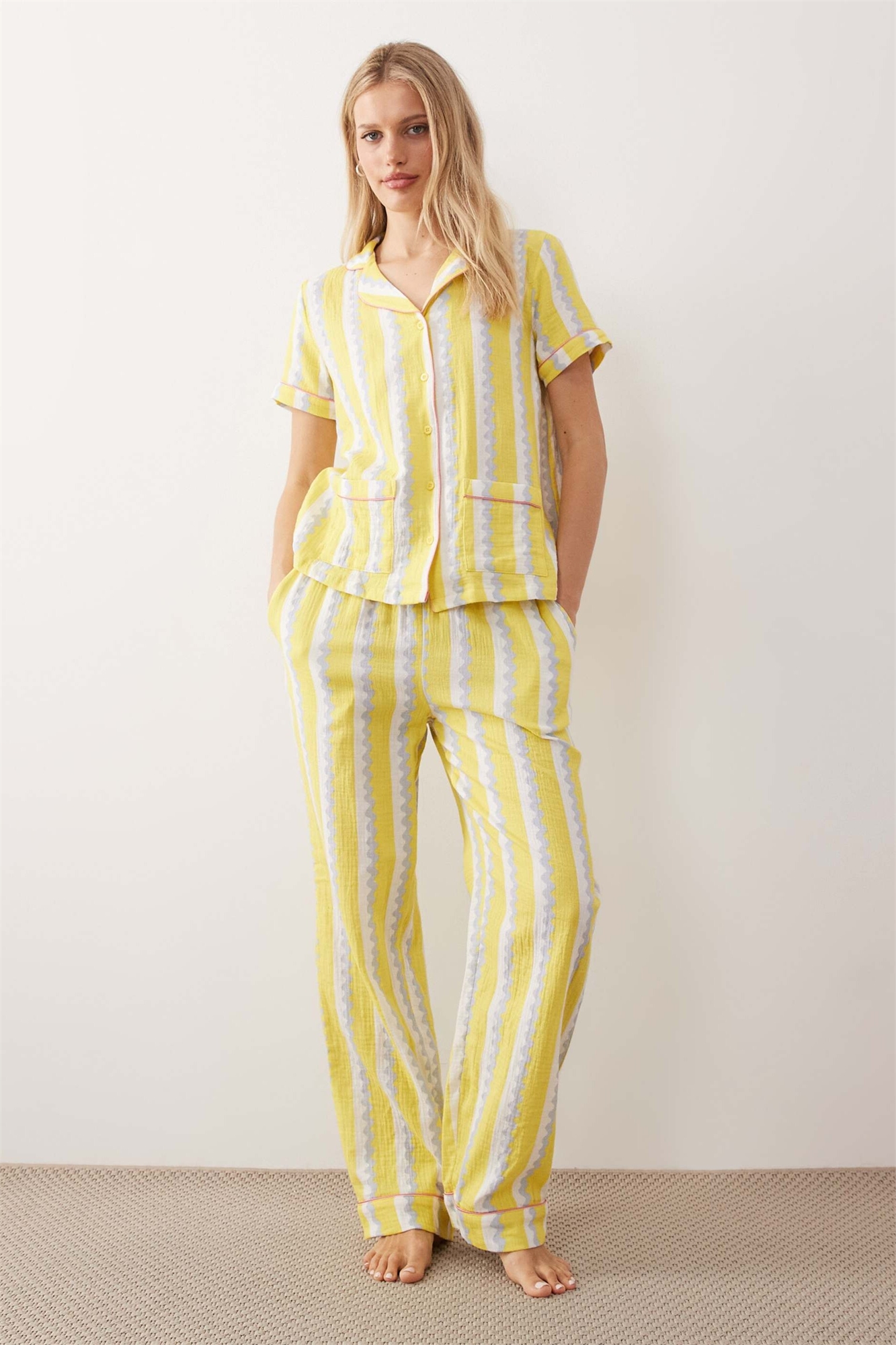 Комплект ночного белья с принтом «Wiggle» с рубашкой с отложным воротником и короткими рукавами и длинными штанами
