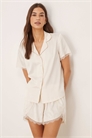 Комплект короткой ночной одежды для подружек невесты из атласа с кружевными манжетами на пуговицах и асимметричным подолом