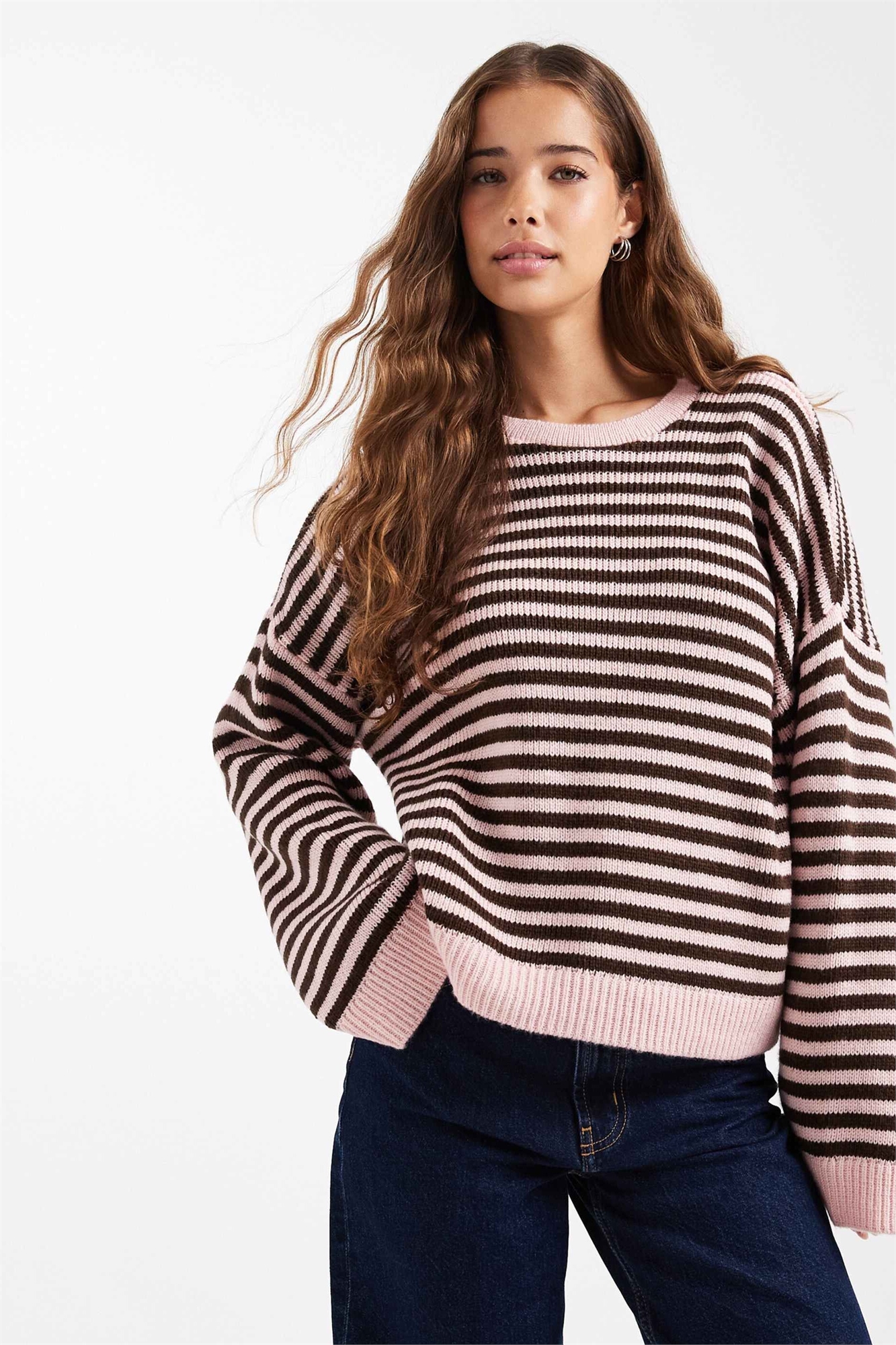 Оверсайз-свитер в шоколадно-розовую полоску