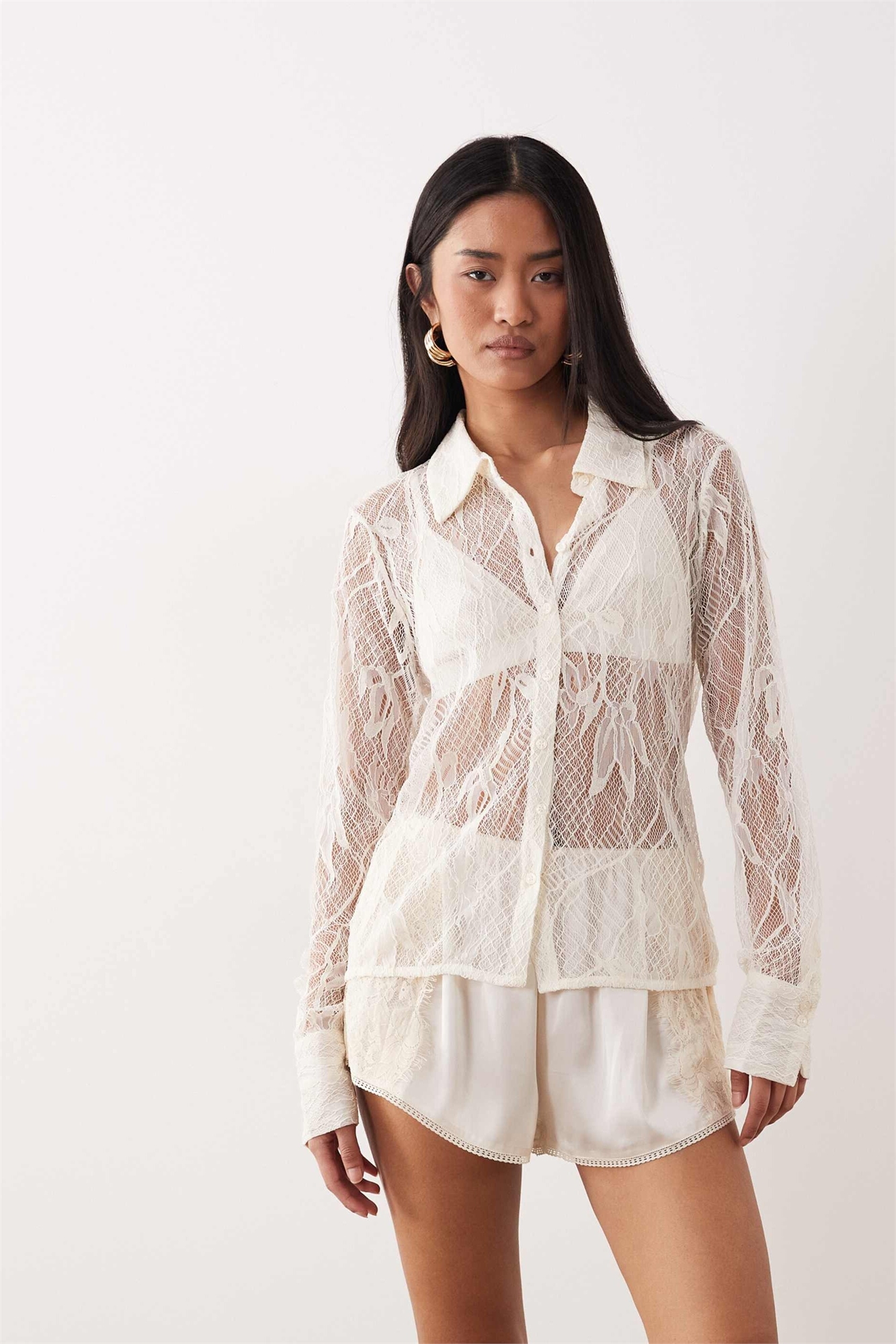 Рубашка с длинными рукавами из прозрачного кружева