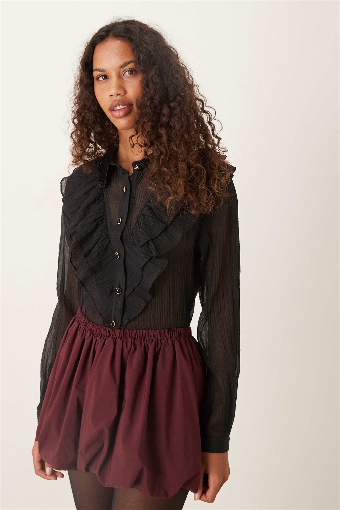 Рубашка Келли из прозрачной ткани с рюшами и застежкой на пуговицы
