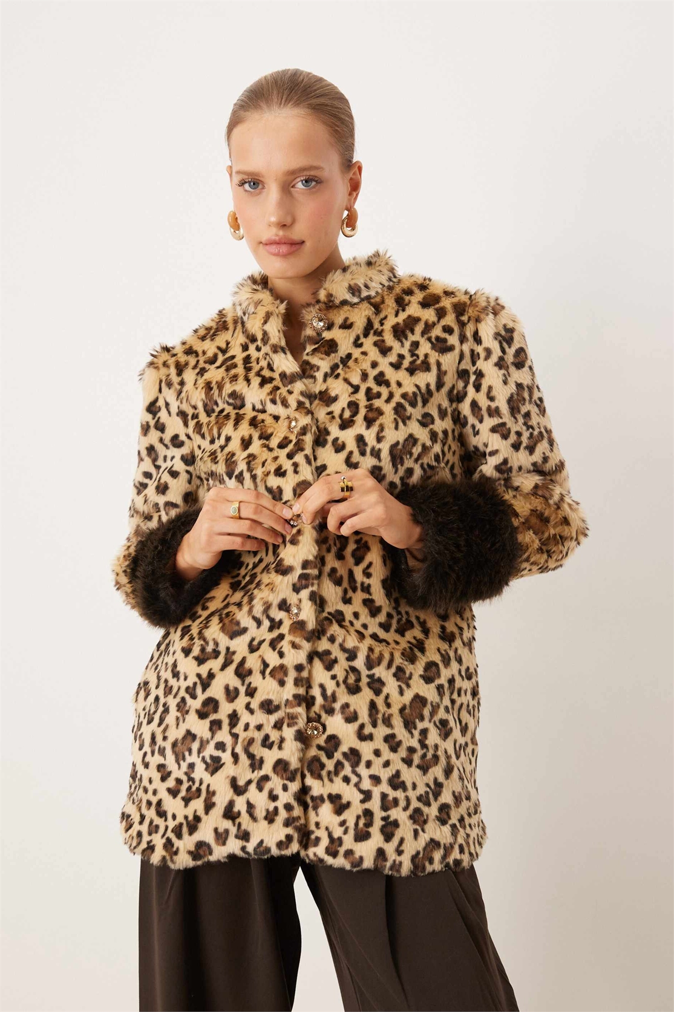 Пальто Malone из искусственного меха с контрастными манжетами и без воротника