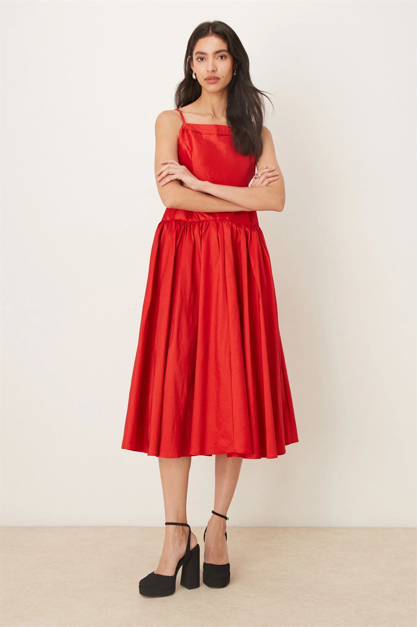 Платье средней длины из тафты с квадратным вырезом и заниженной талией от Quartet