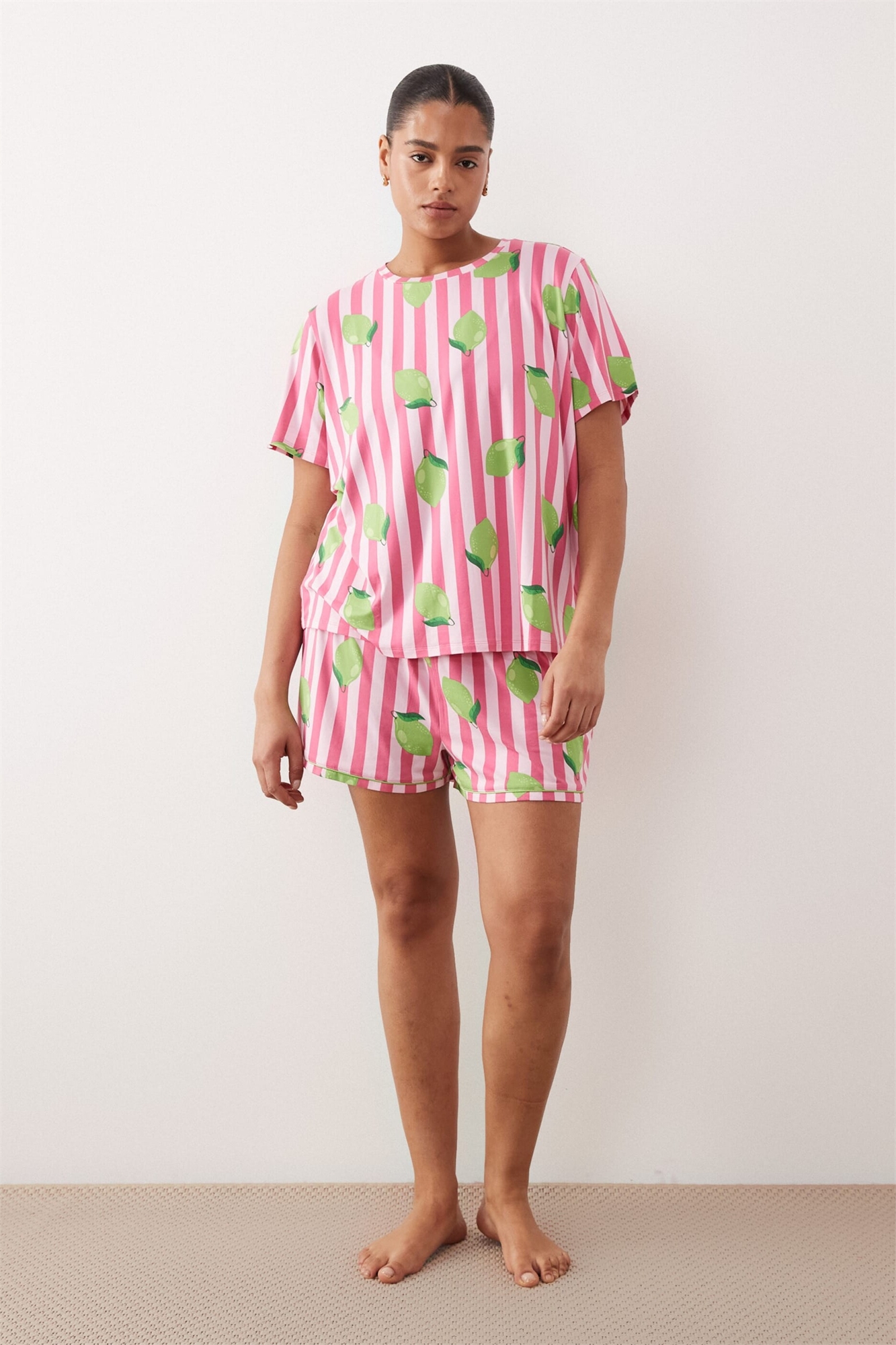 Комплект из футболки из трикотажа с вырезом и шорт