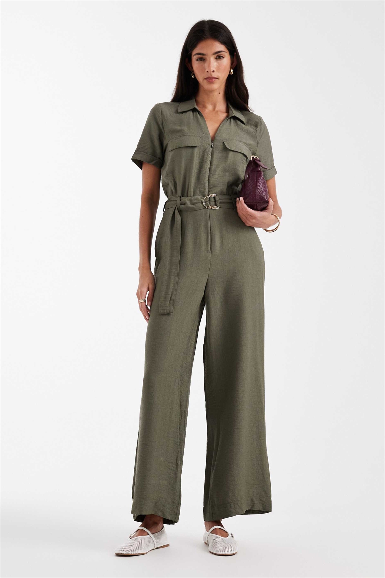 Комбинезон с поясом на талии и функциональными карманами