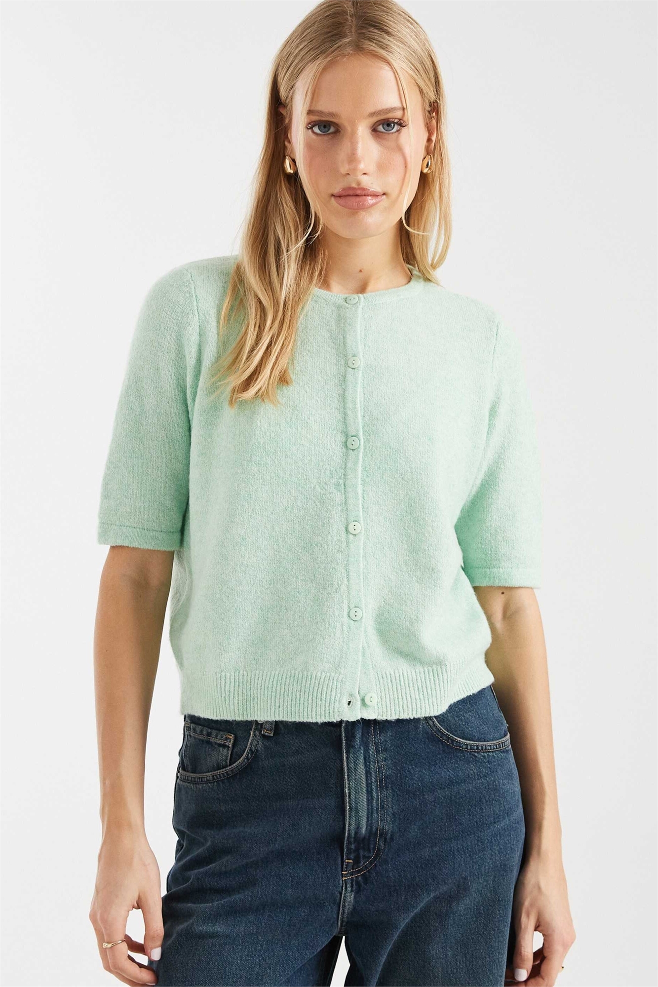 Кардиган с круглым вырезом и короткими рукавами