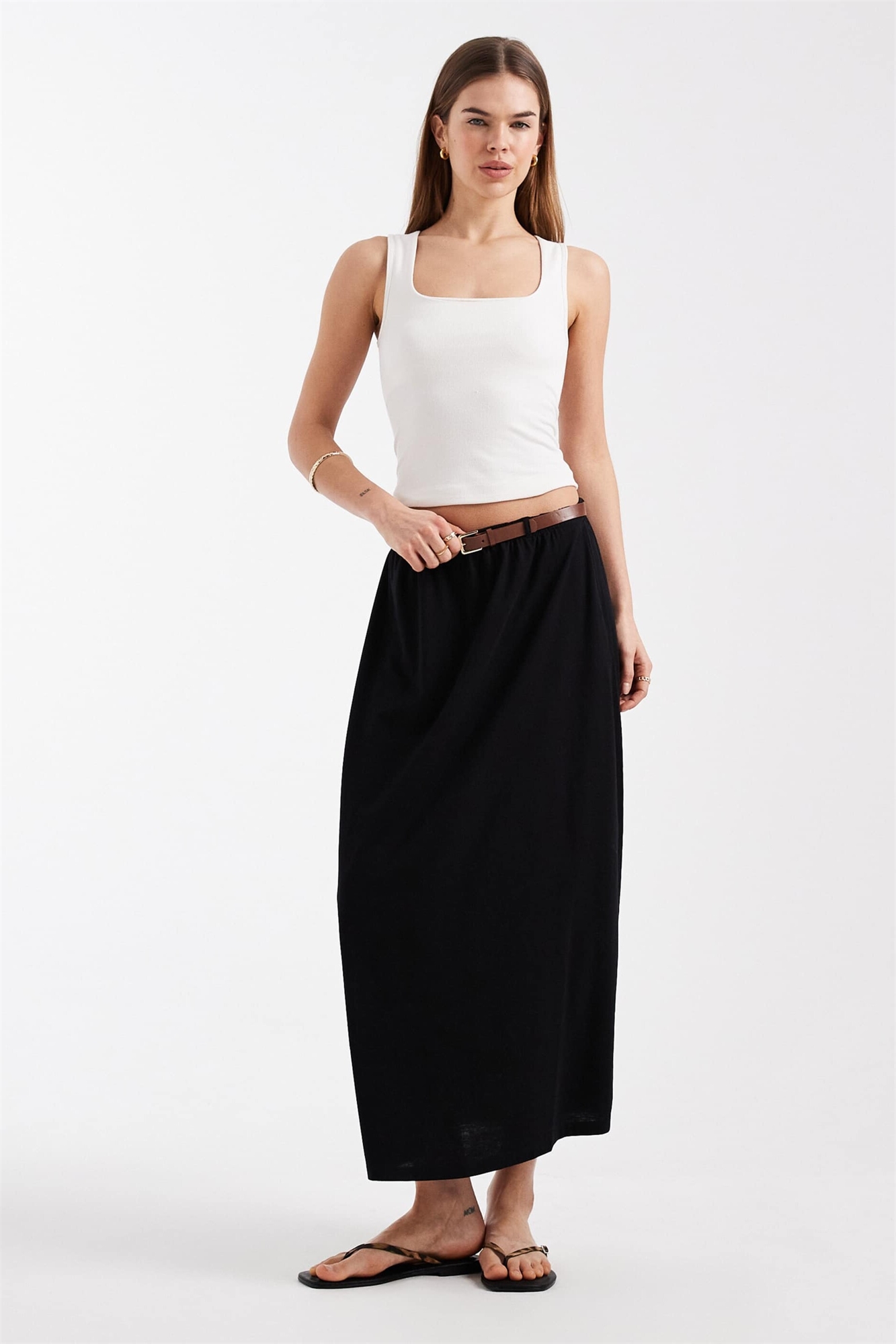 Длинная юбка из джерси с поясом