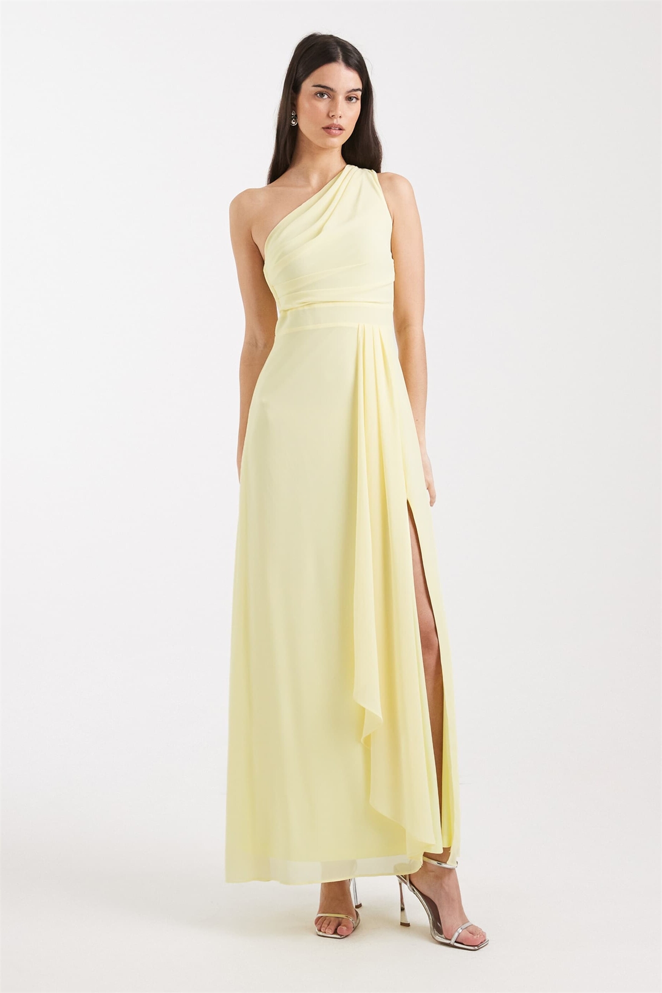 Макси-платье из шифона для подружки невесты с одним плечом и разрезом сбоку