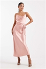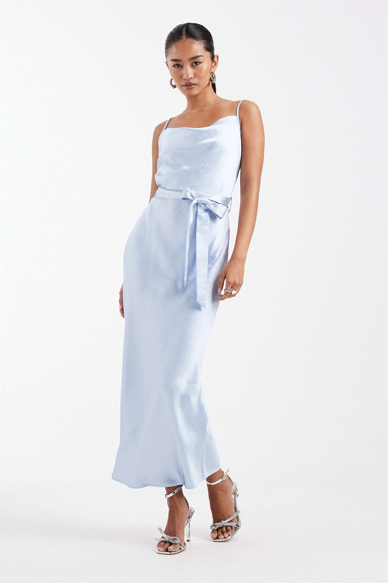 Атласное платье-миди с завязкой на талии и бретелями для подружки невесты