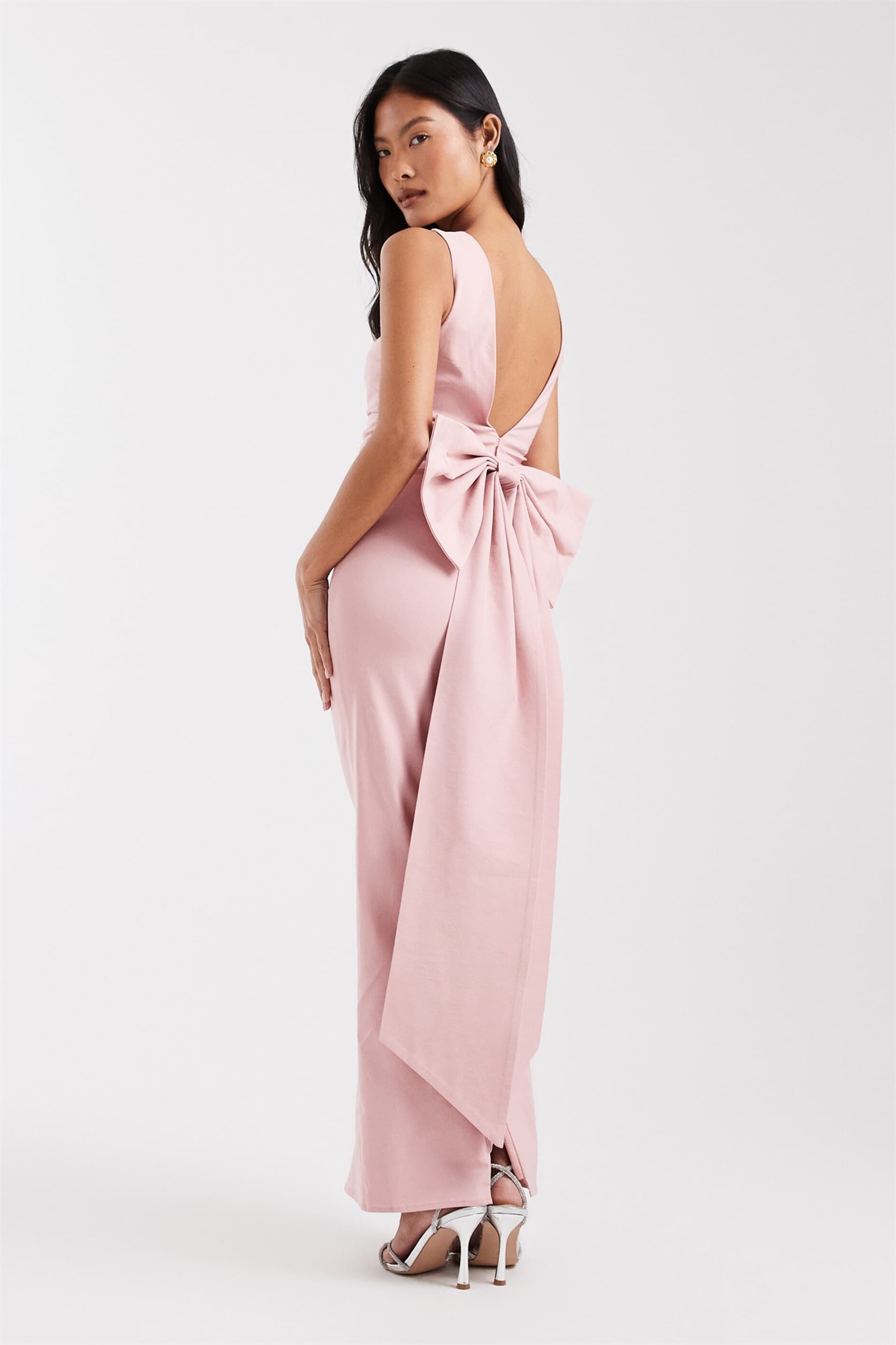 Макси-платье из бенгалина для подружки невесты со съемным бантом на спине