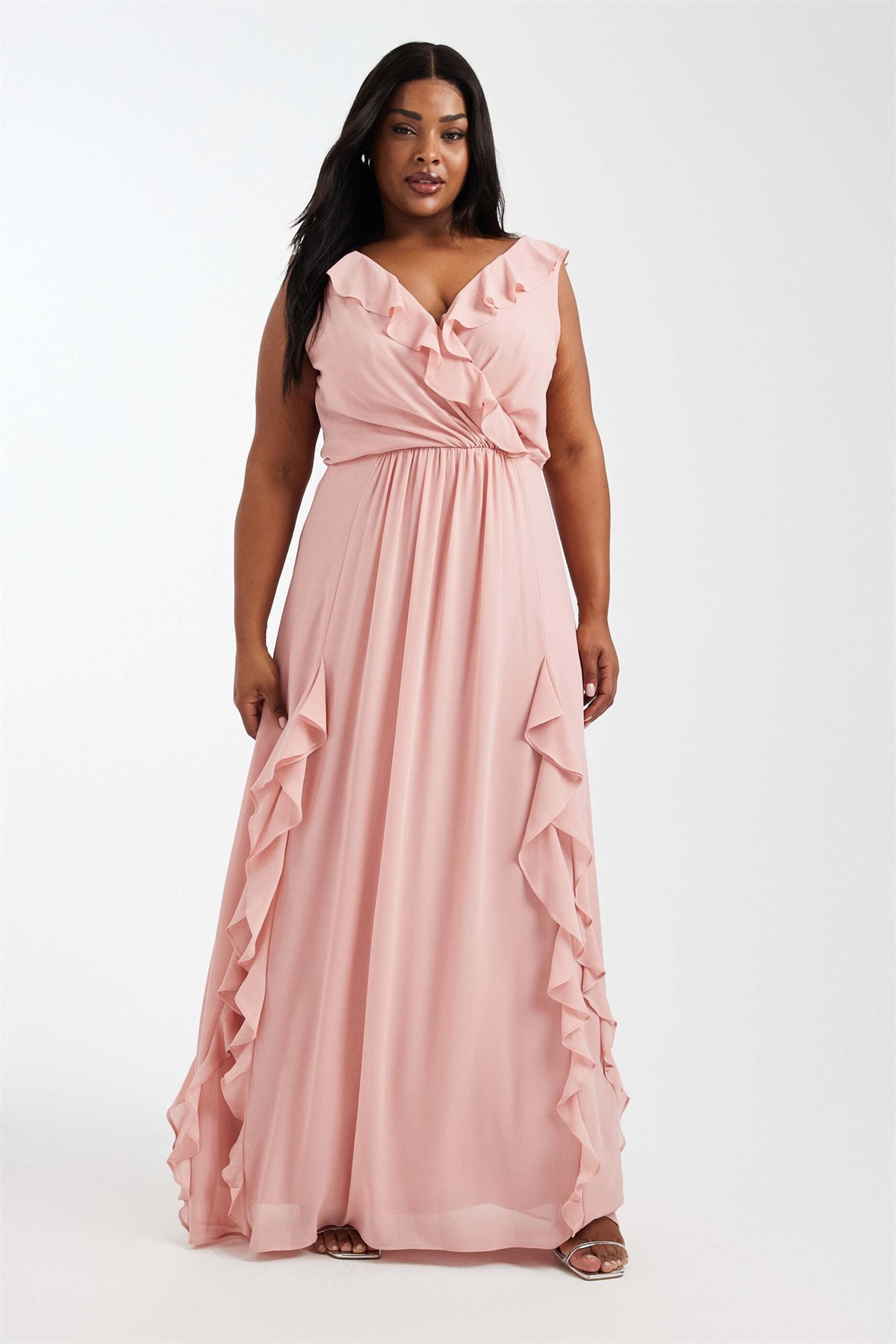Макси-платье для подружки невесты из шифона с V-образным вырезом и оборками