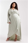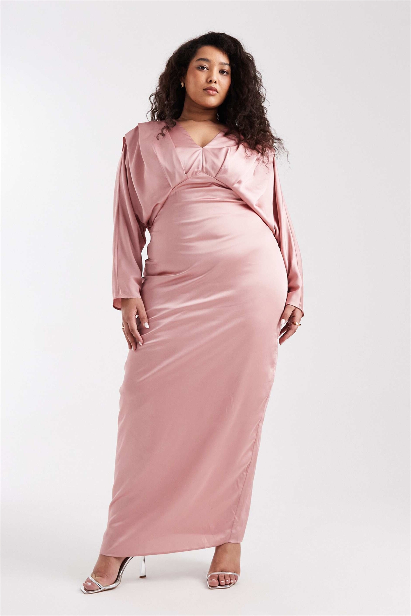 Платье-макси для подружки невесты из атласа с V-образным вырезом и плиссированными деталями