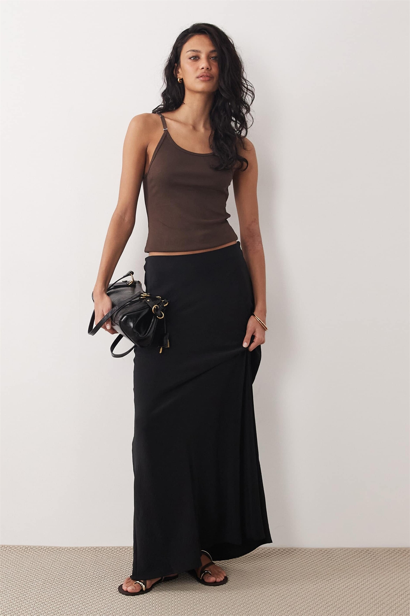 А-силуэтная атласная юбка макси