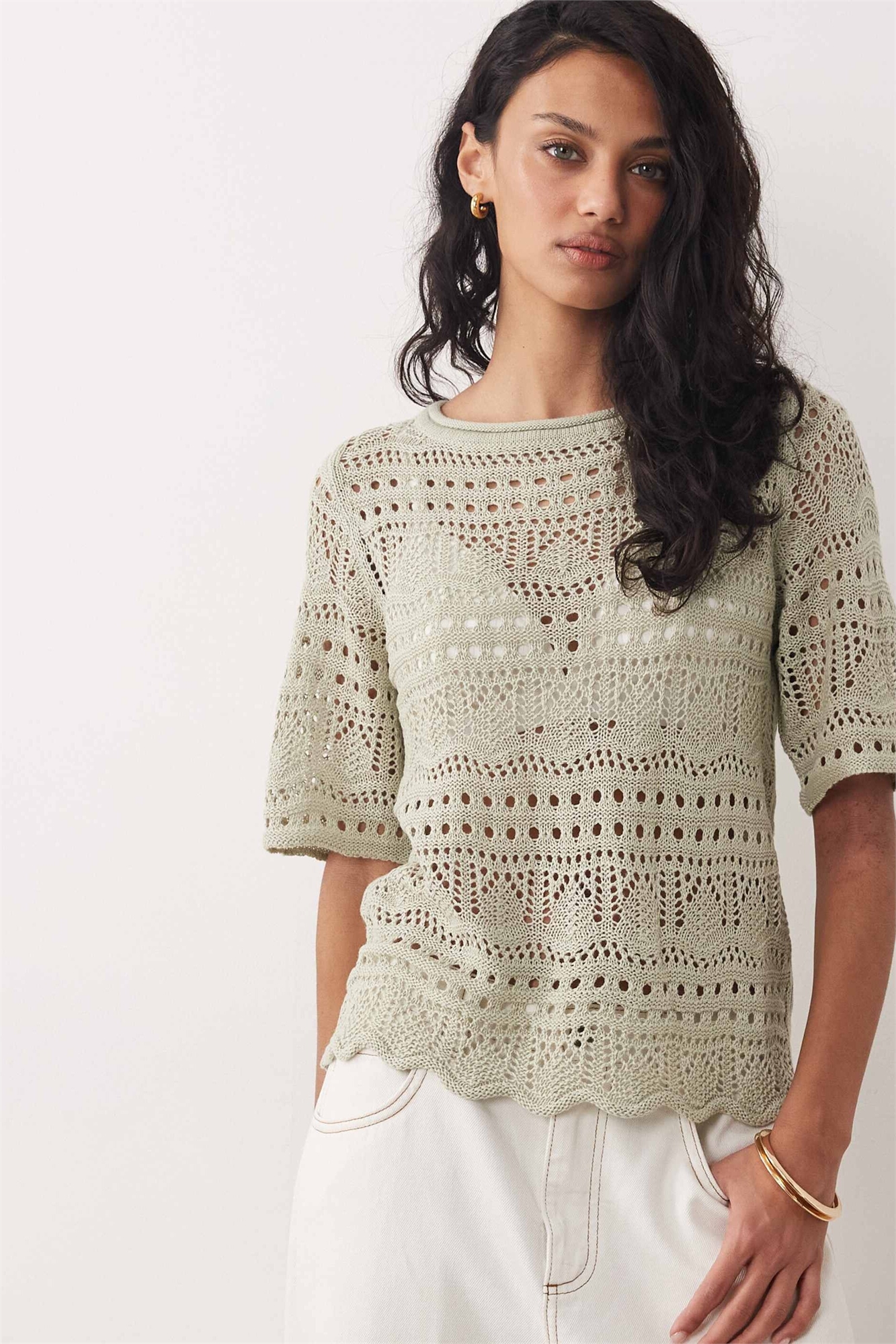 Топ с открытой вязкой и полурукавами, связанный крючком