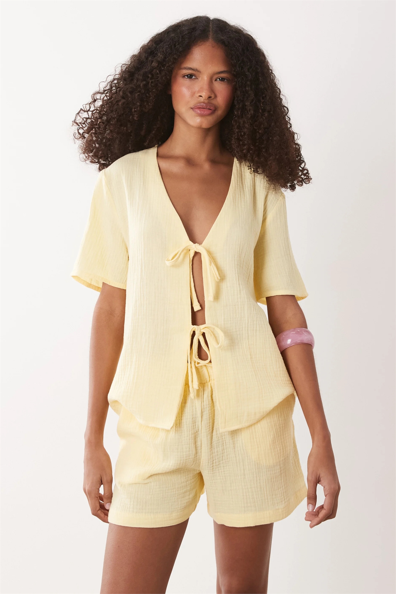 Рубашка из марли с завязками спереди и короткими рукавами co-ord