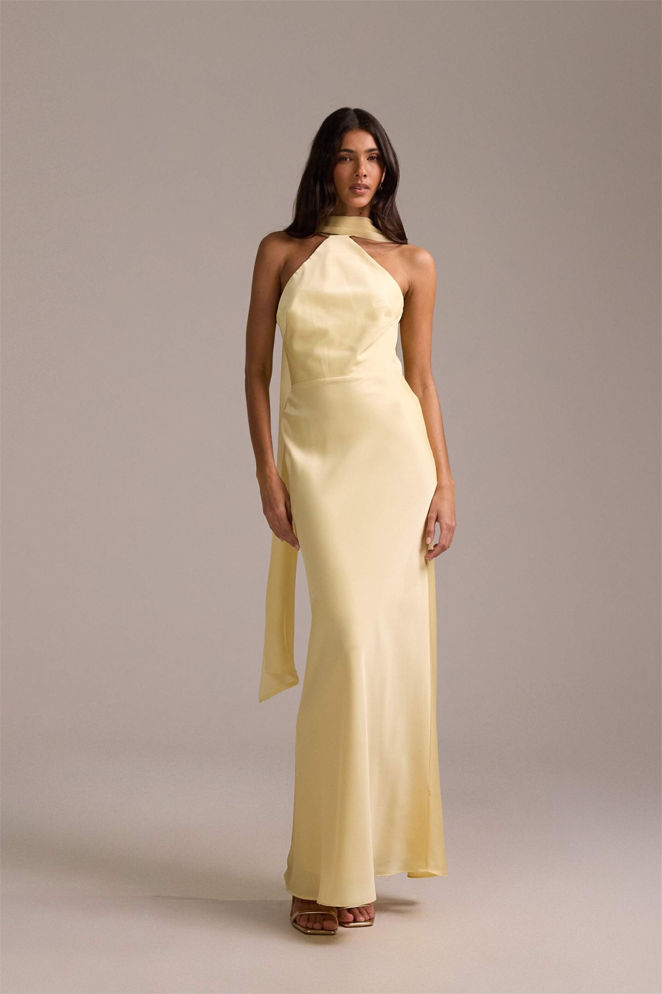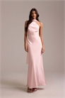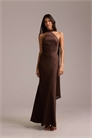 Атласное макси-платье для подружек невесты с завязками на шее и шарфом
