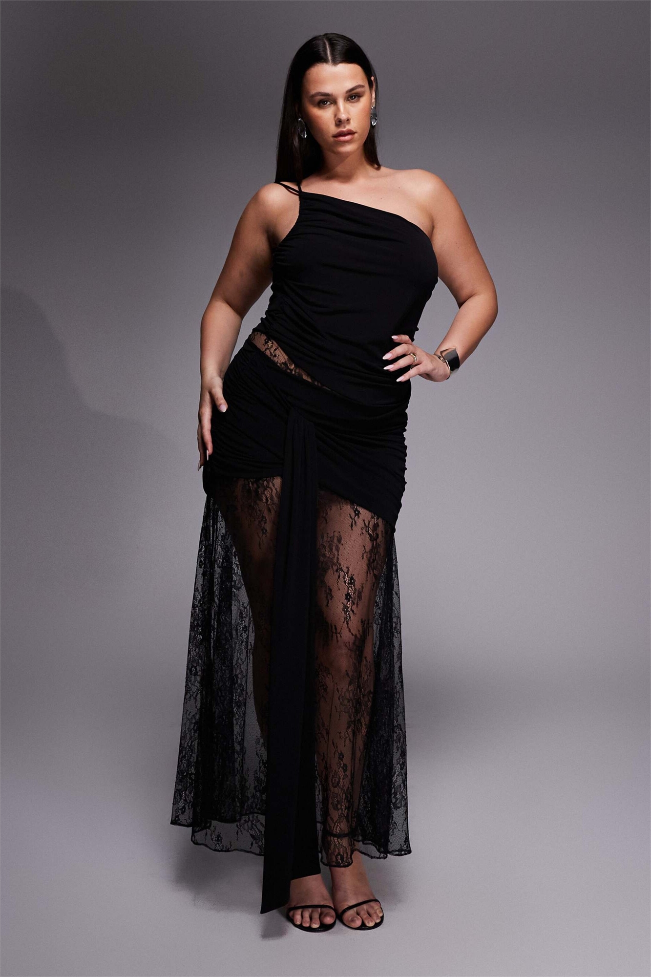 Макси-платье из трикотажа с кружевом