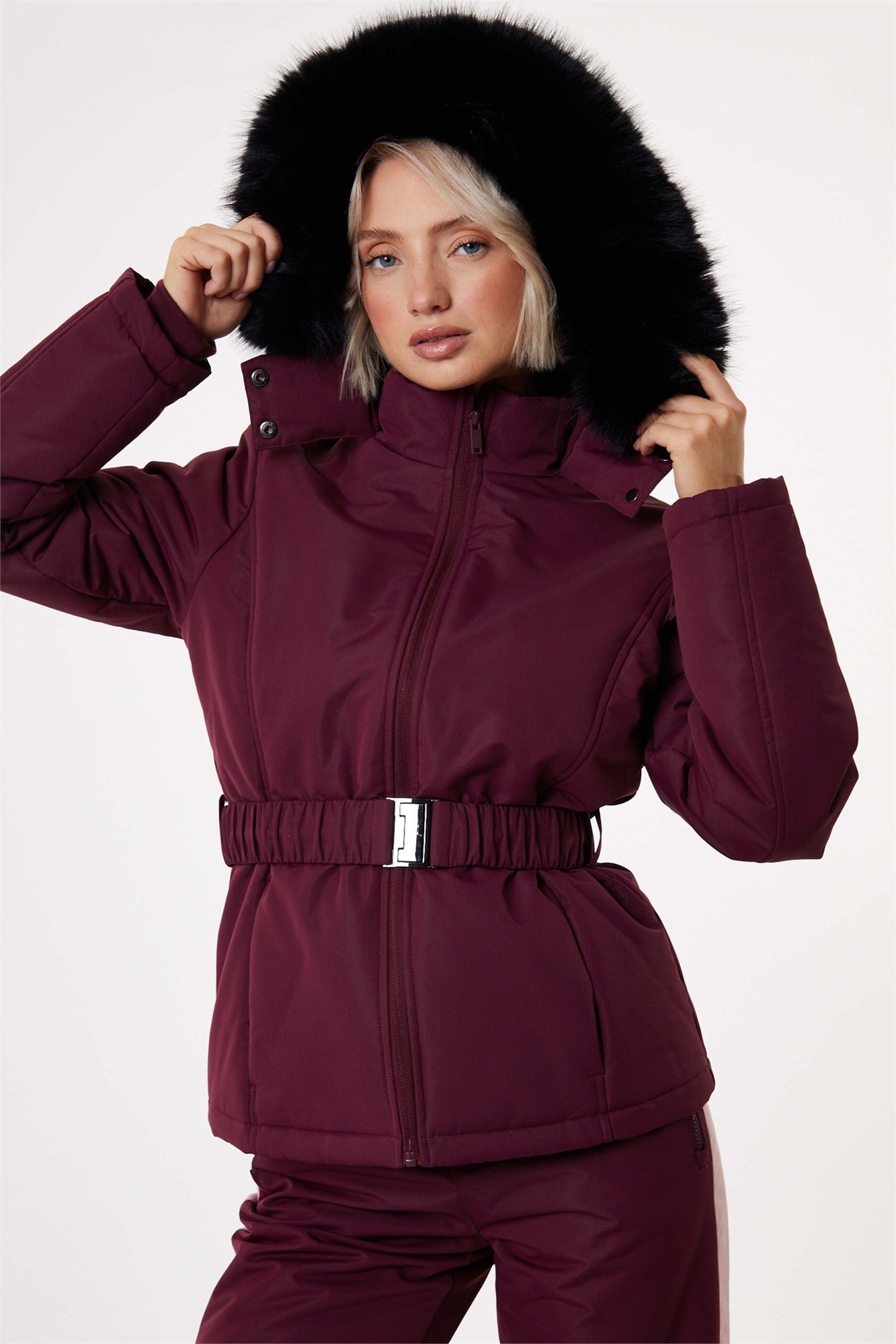 Утепленная лыжная куртка с поясом, цвет «вино»