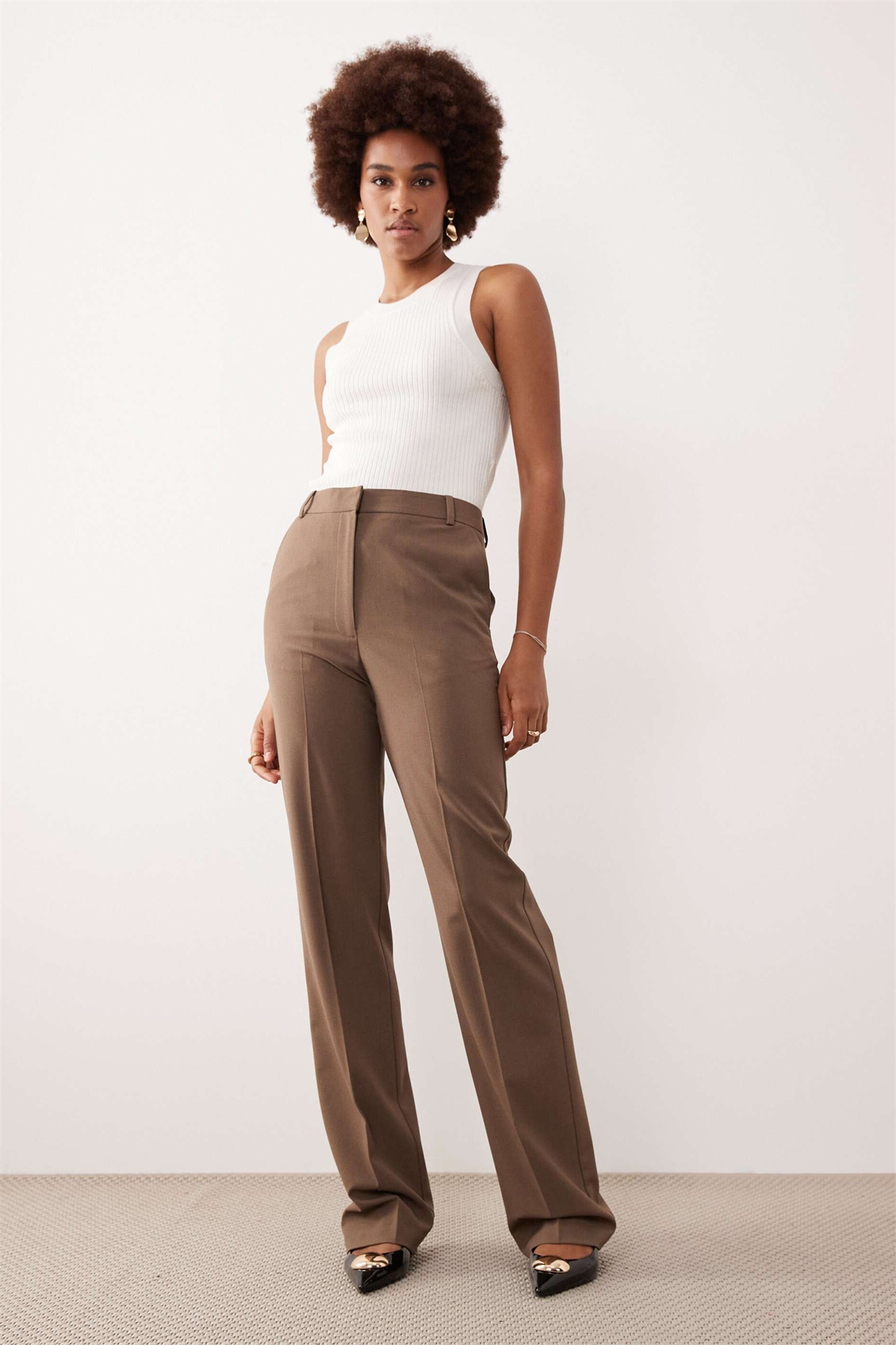 Высокие брюки с зауженными прямыми брючинами