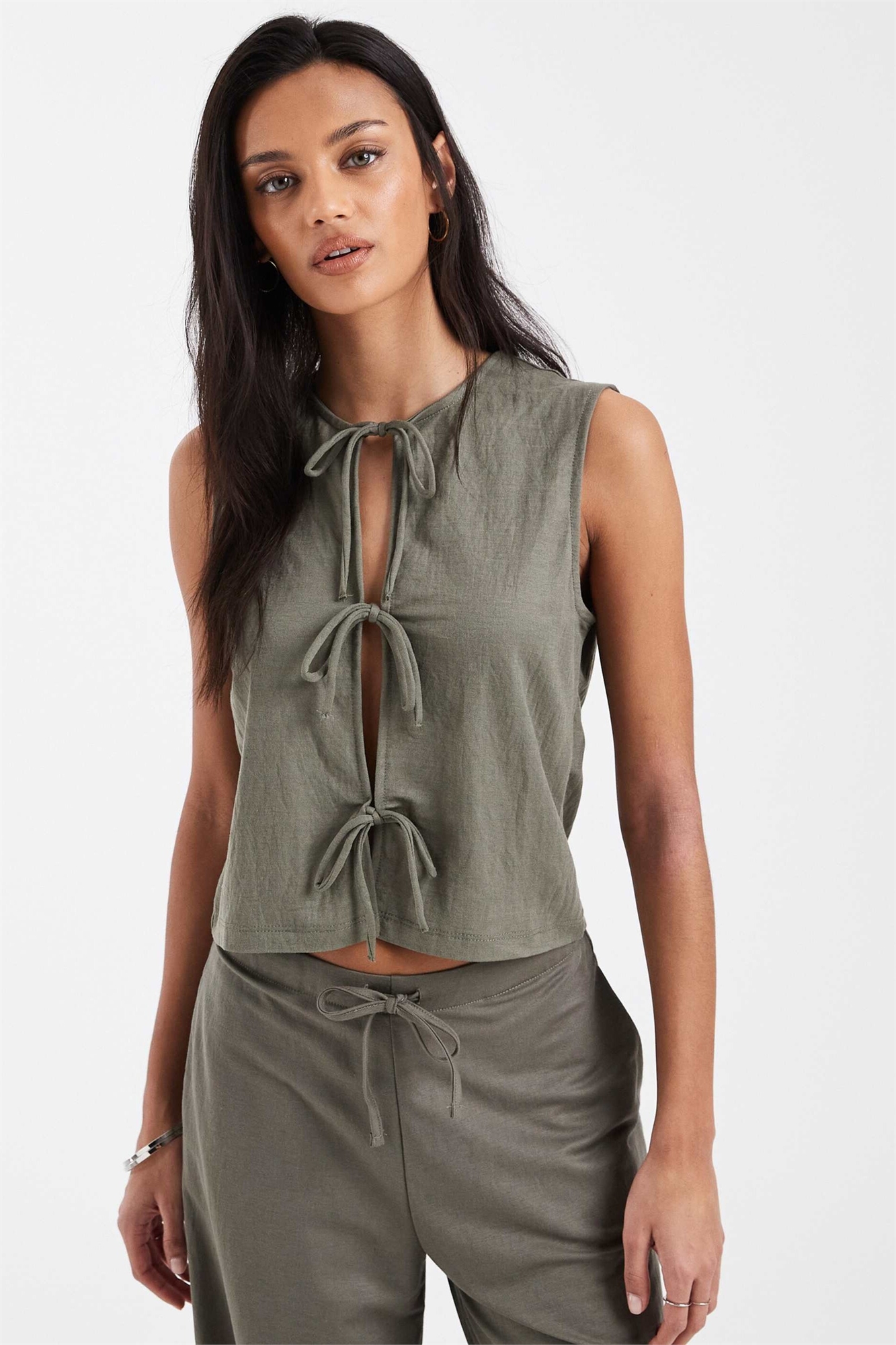 Топ без рукавов с завязками спереди co-ord