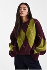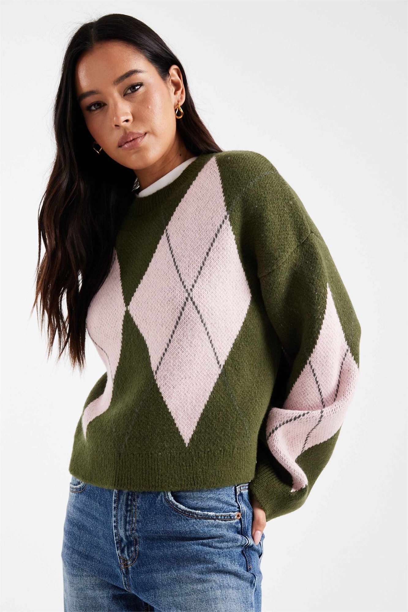 Пушистый вязаный свитер с аргайловым узором цвета хаки