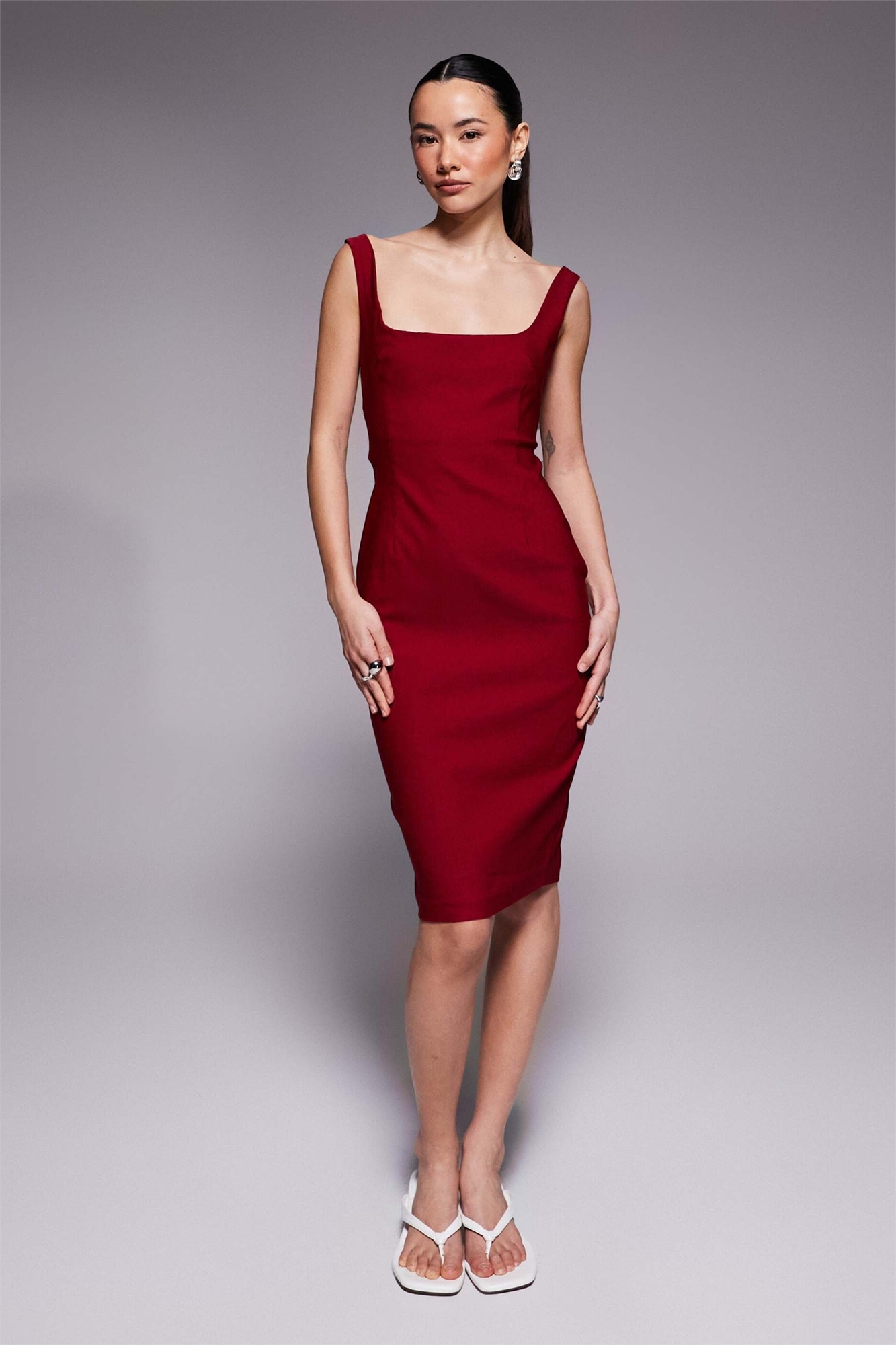 Платье-миди облегающего кроя с квадратным вырезом из бенгалина