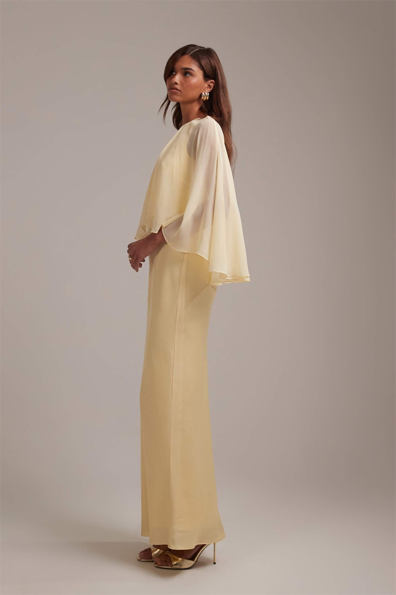 Накидка из прозрачного шифона для подружек невесты в сочетании с атласным платьем косого кроя