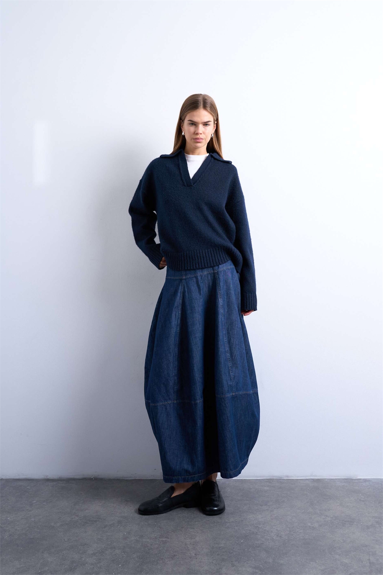 Макси-юбка из денима с швами