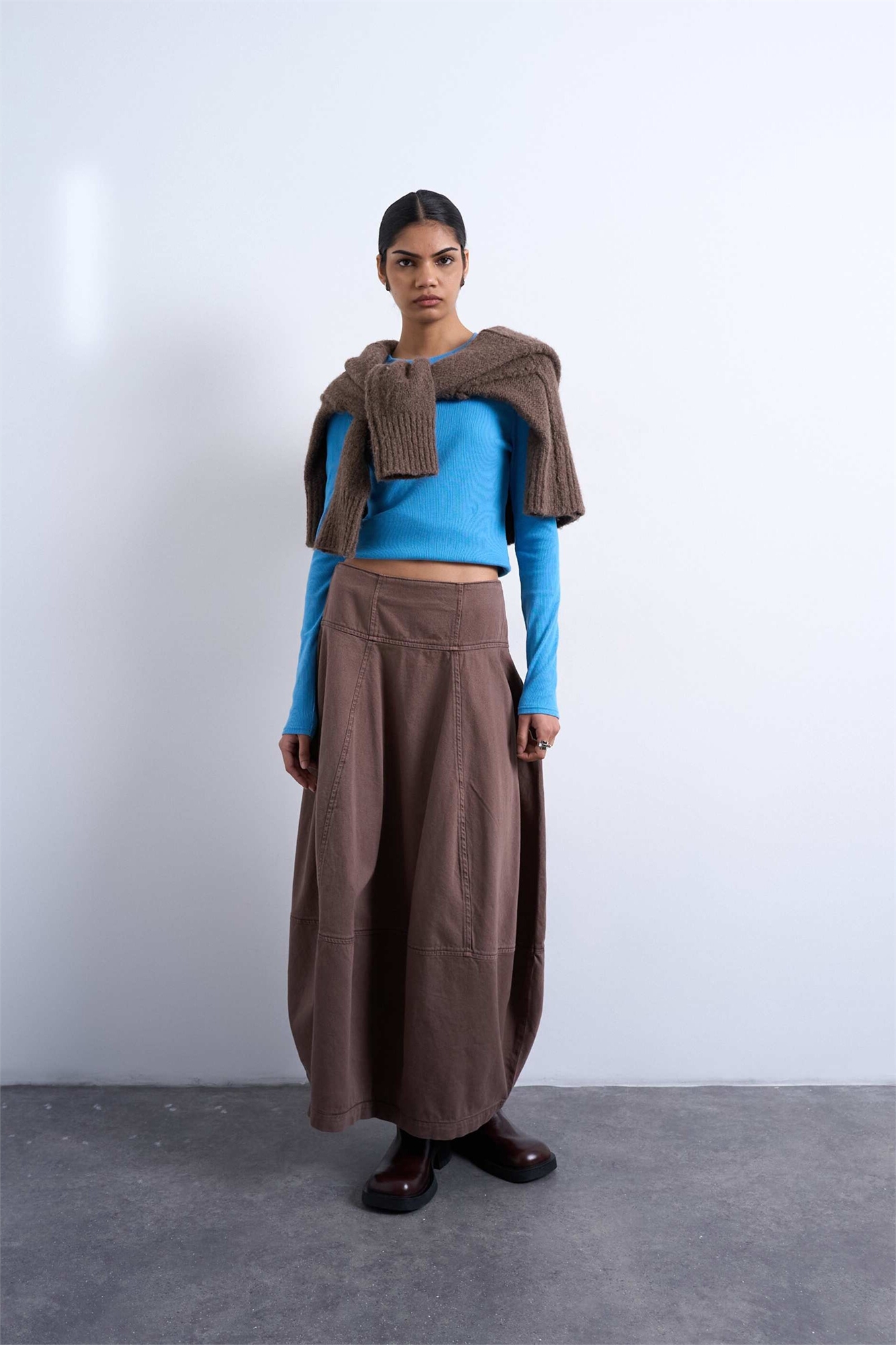 Макси-юбка из денима с швами