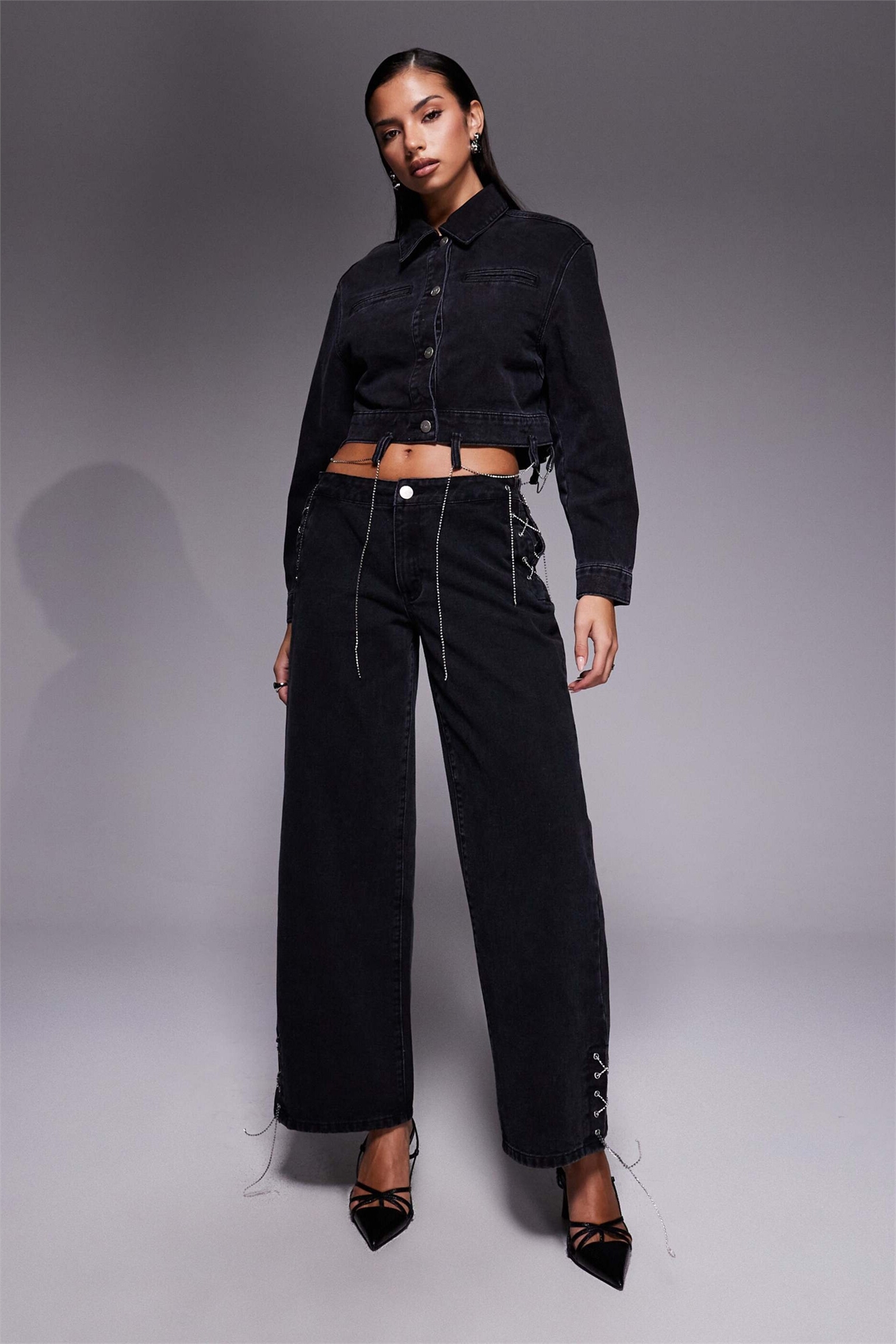 Джинсы с широкими штанинами и цепью co-ord