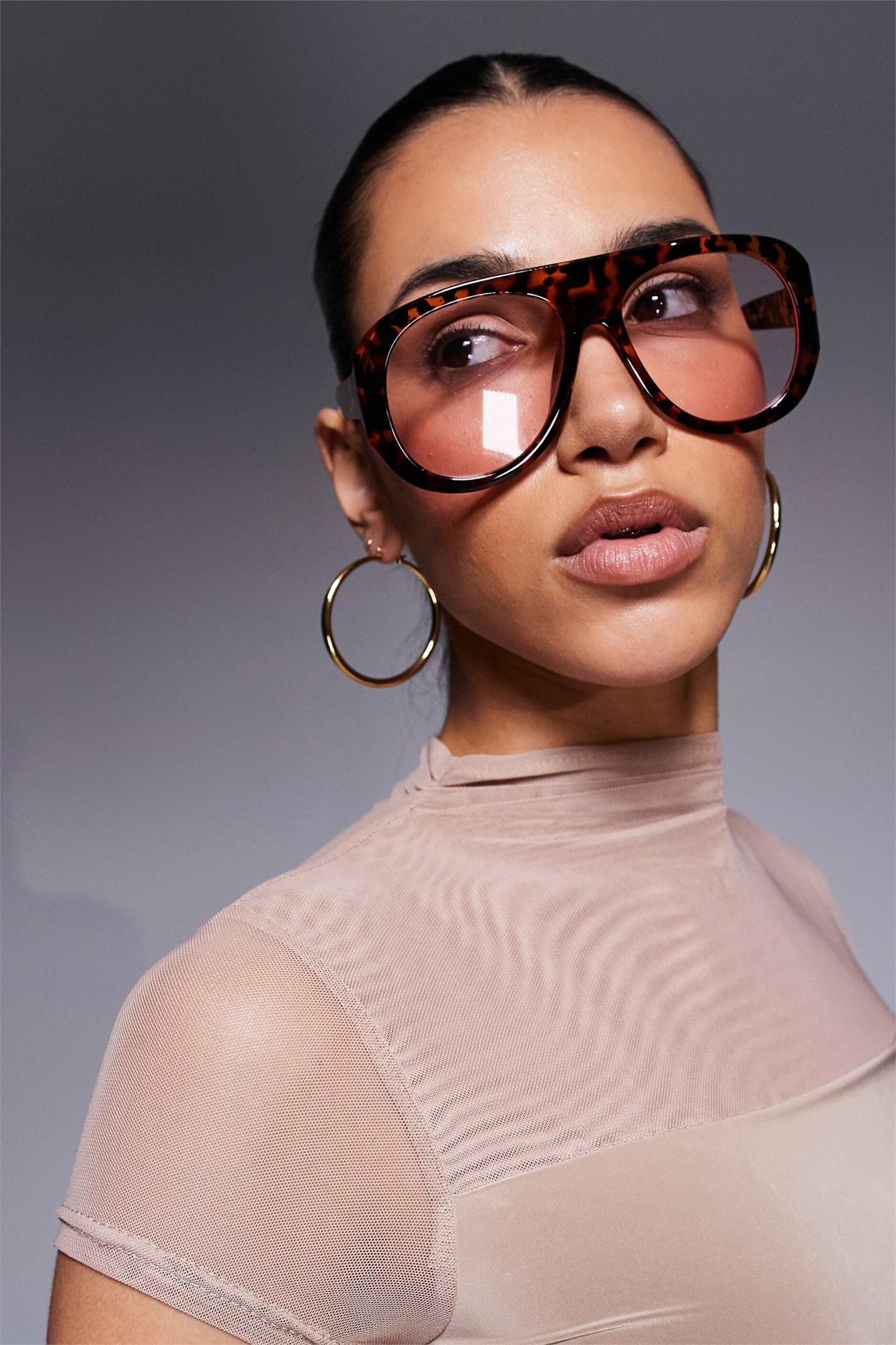 Эксклюзивные очки-авиаторы с толстыми линзами цвета коричневой черепахи