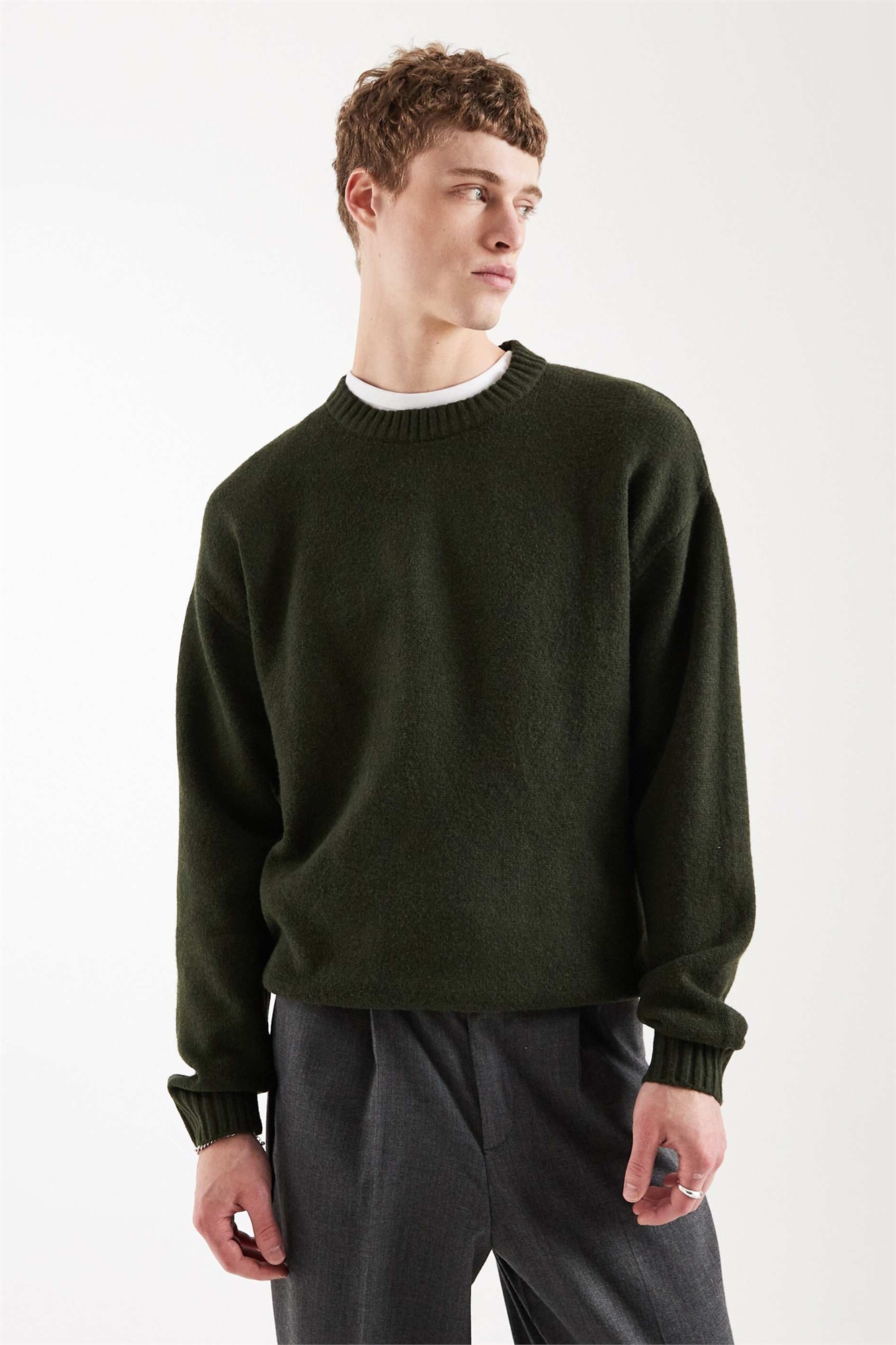 Объемный пушистый свитер с круглым вырезом