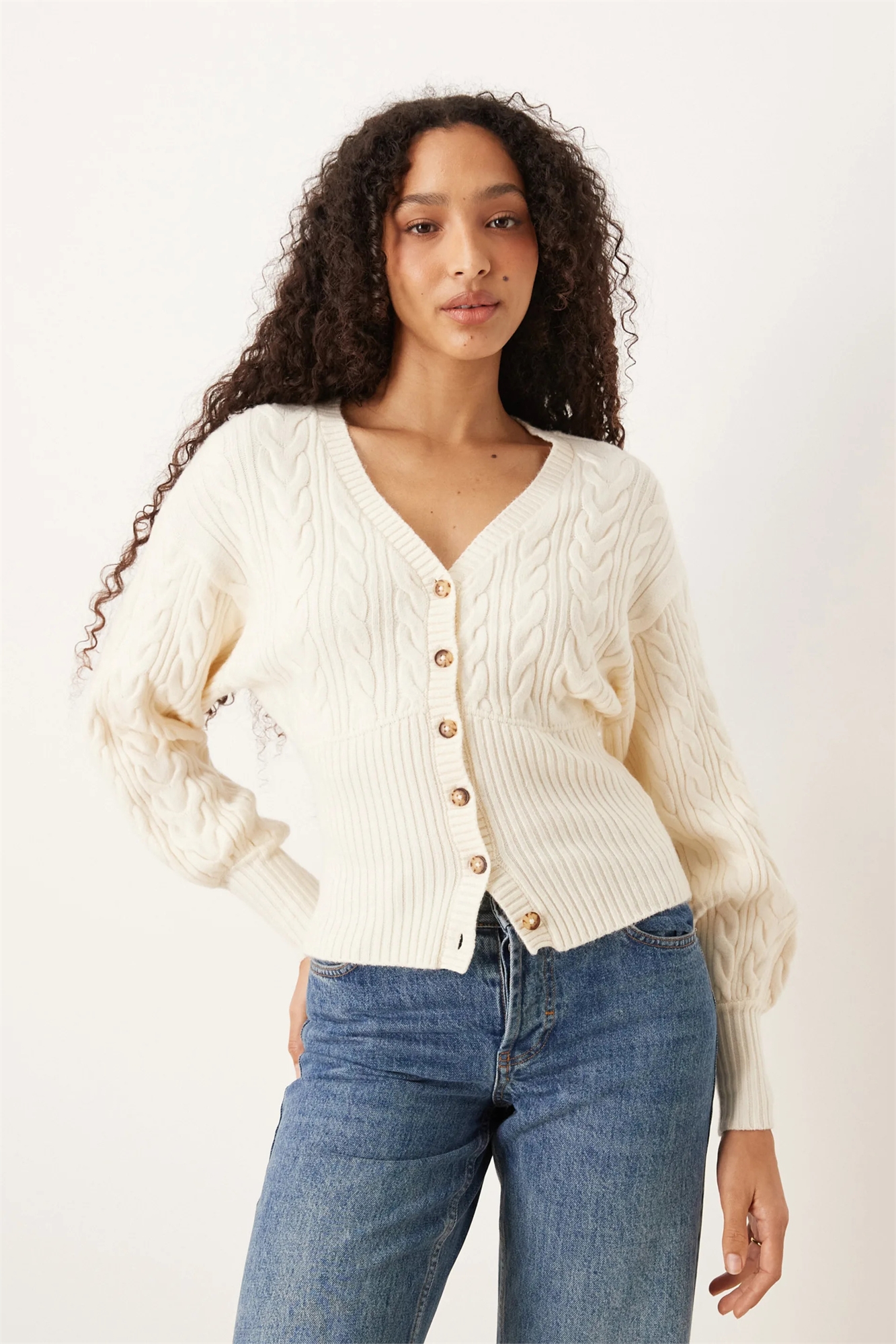 Вязаный кардиган с V-образным вырезом и косами