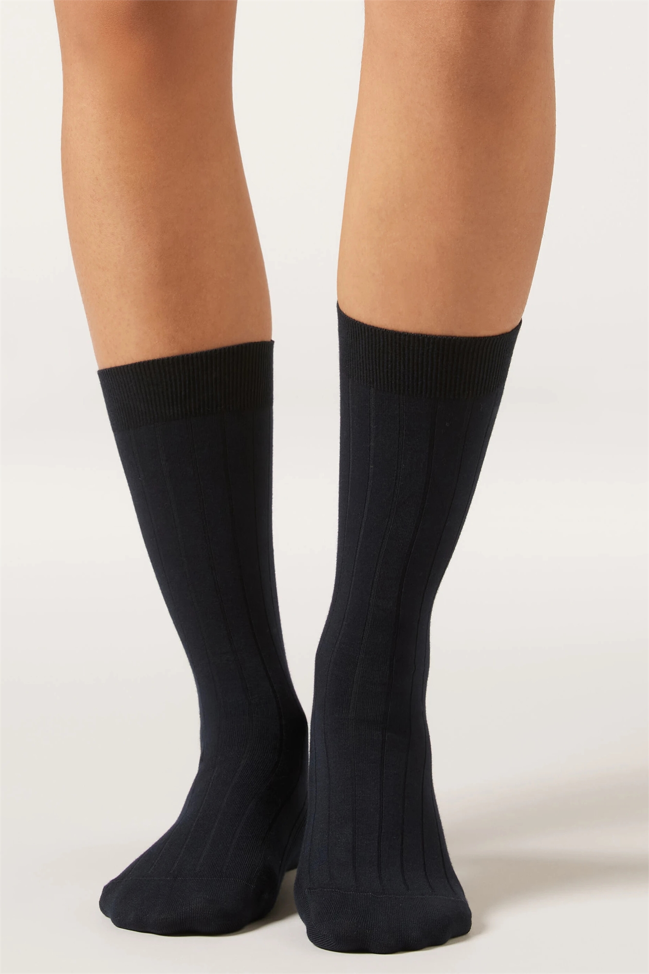 Гольфы с ребристой отделкой до середины икры