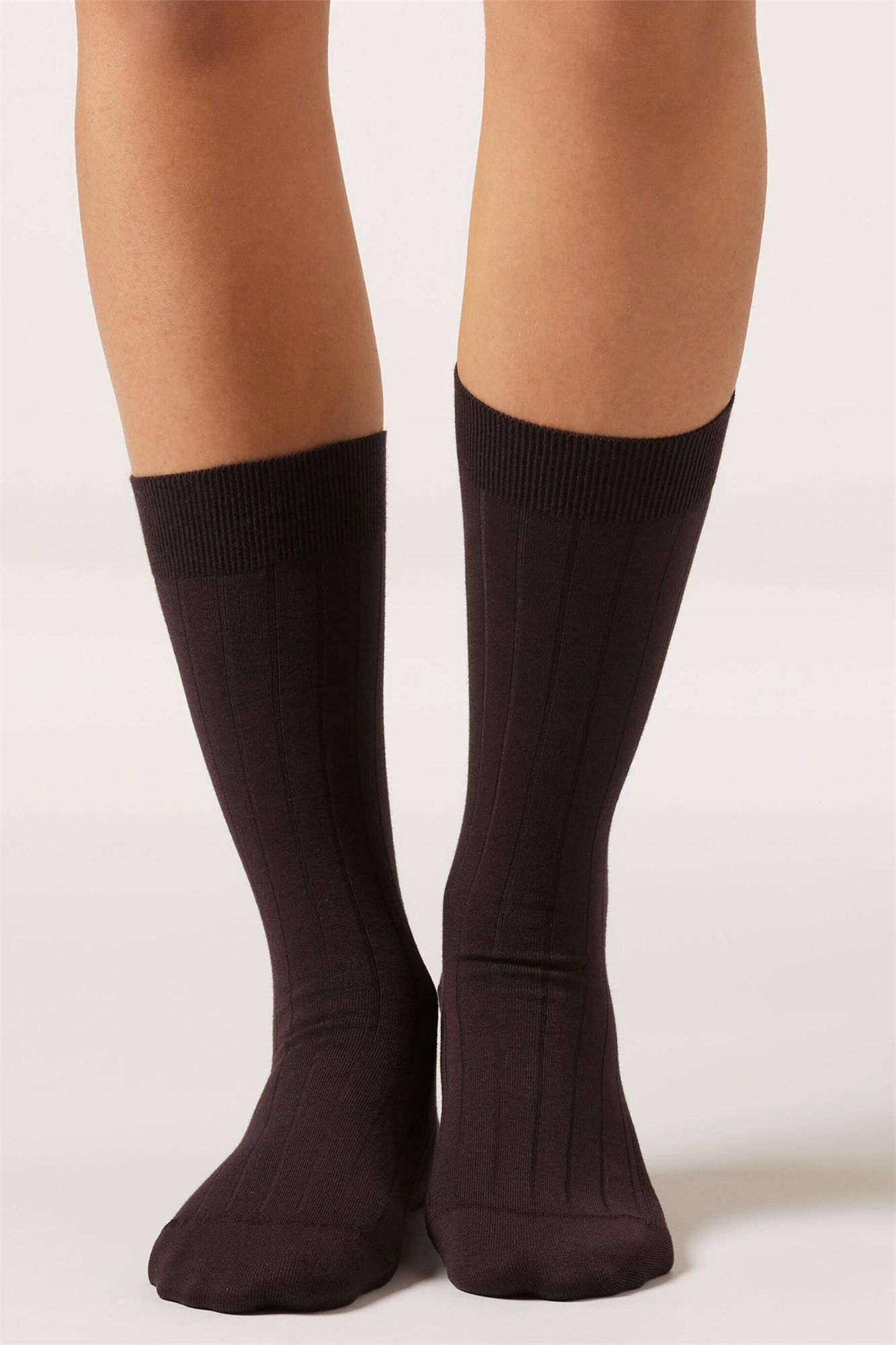 Гольфы с ребристой отделкой до середины икры