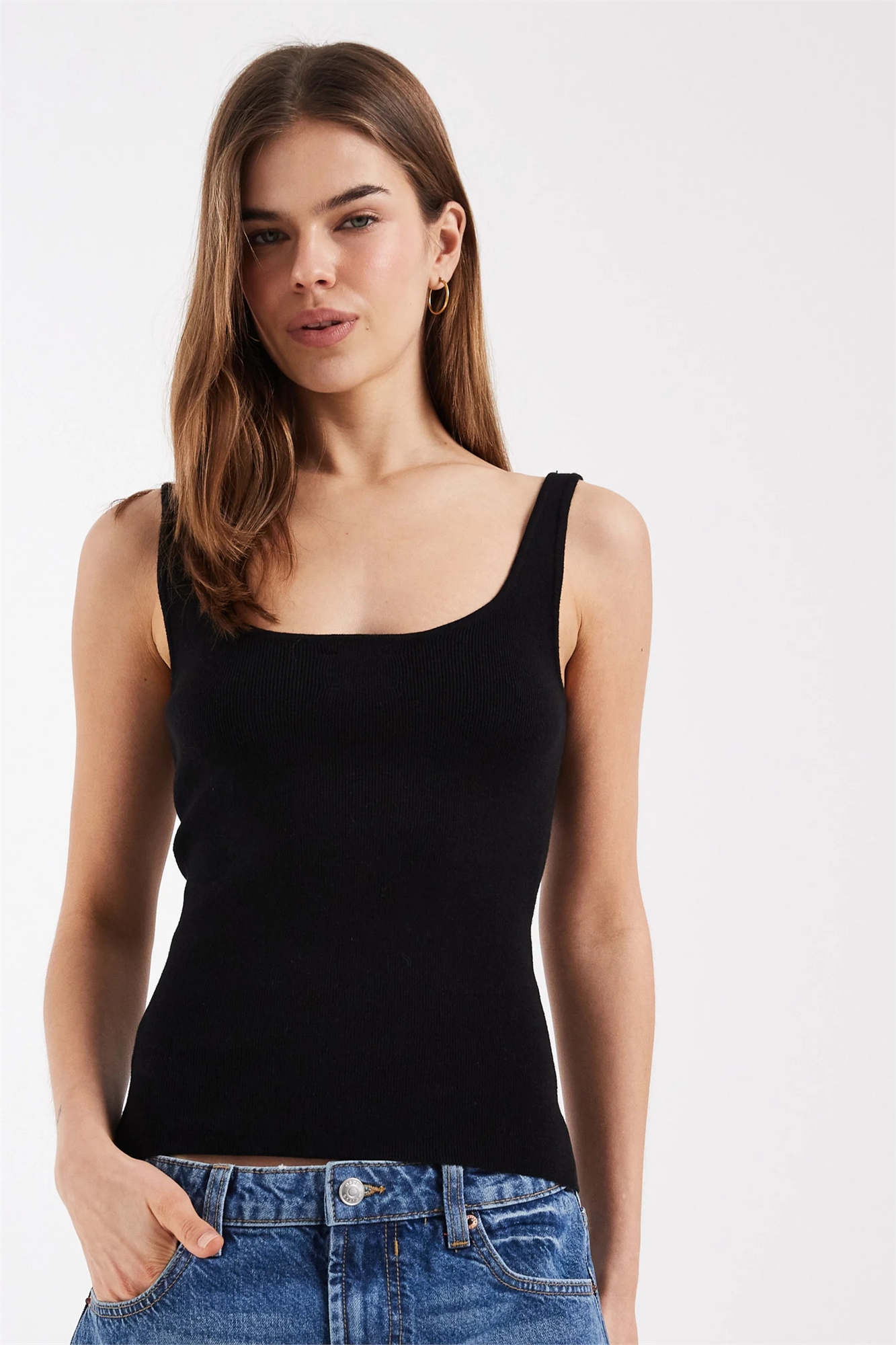 Топ с круглым вырезом из смешанной ткани с хлопком